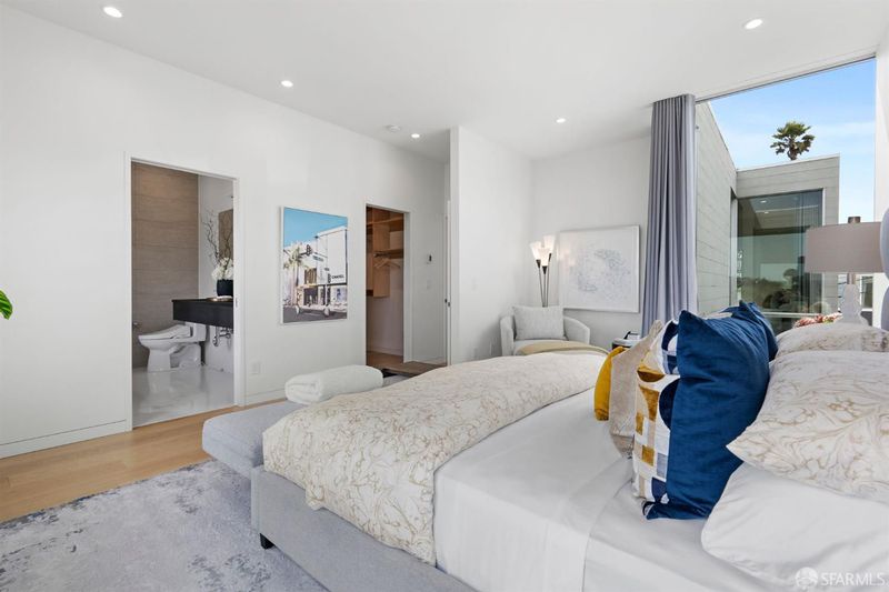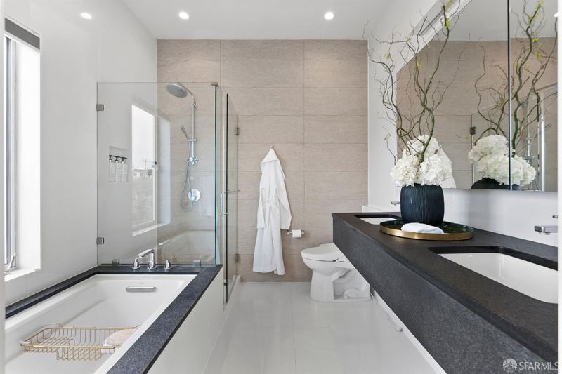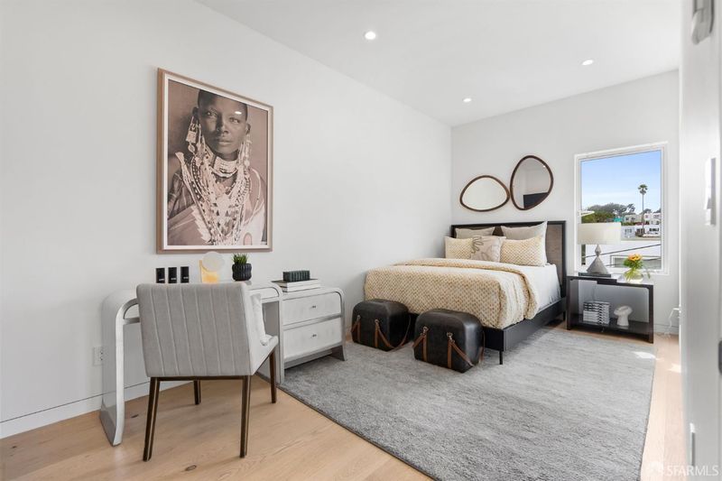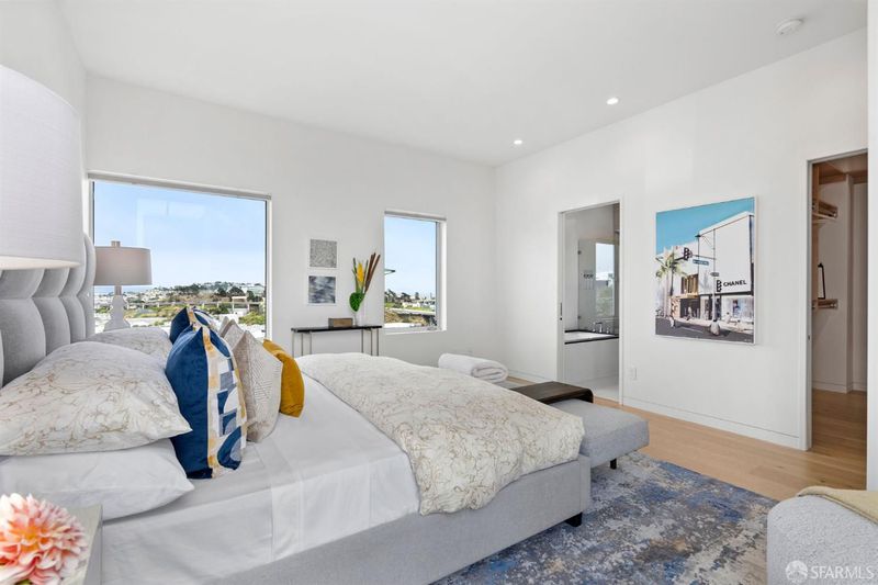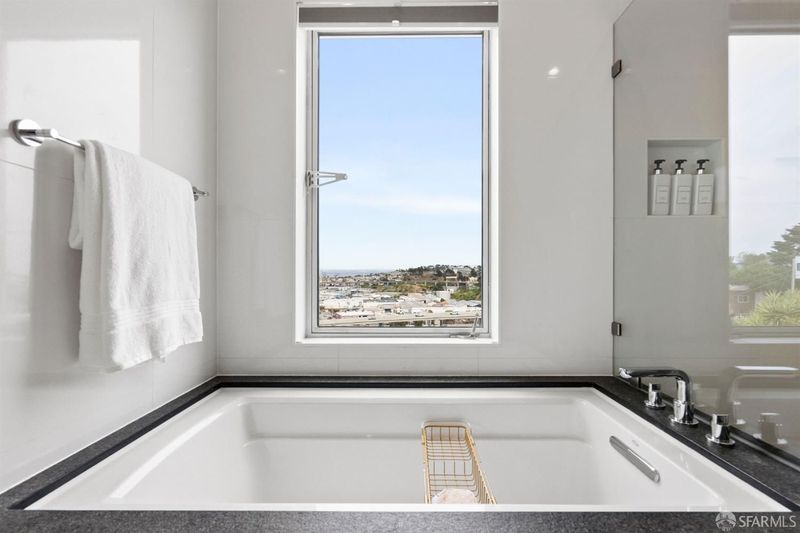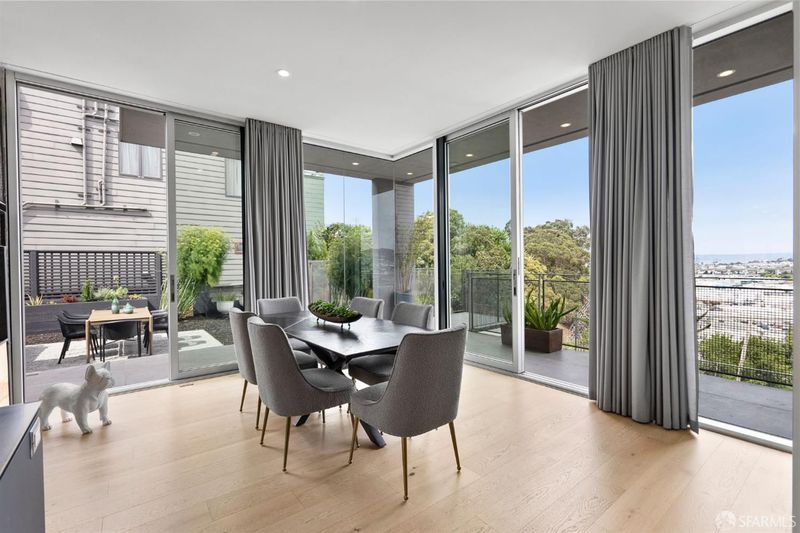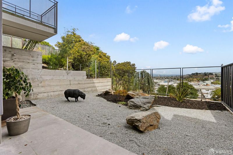 Set on a tucked-away block in Bernal Heights, 147 Bronte delivers a striking take on contemporary city living with wide-open views stretching toward the East Bay. Originally conceived by an architect and completely reworked in 2018, this 4-bedroom, 3.5-bath home was rebuilt from the ground up, including new foundation and all major systems, with additional square footage added to enhance both scale and livability. The main level unfolds with dramatic ceiling heights and walls of glass that draw in light and frame the outlook, while the kitchen is designed for both everyday use and entertaining, with generous workspace and clean-lined finishes. Just beyond, a breezeway and beautifully composed garden patio create a natural extension of the living space. A sculptural steel staircase leads to three bedrooms upstairs, including a serene primary suite with a spa-like bath, large walk-in closet, and captivating views. The lower level offers a flexible fourth bedroom or office with direct access to the garden. Radiant heat, a curated mix of modern materials including FENIX cabinetry, and a 2-car garage with interior access complete the home. Ideally located near Alemany Farmers Market, Cortland Avenue, and convenient freeway and transit options, this is a thoughtfully designed retreat in one of San Francisco's most dynamic neighborhoods.