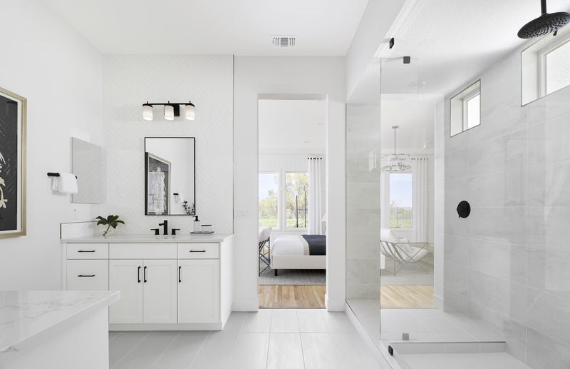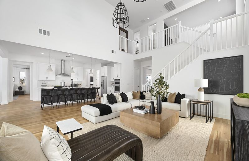 This beautiful Plan 1 features an open floor plan with covered patio, cozy loft, quartz kitchen countertops, gray cabinetry, stainless steel KitchenAid appliances, full height backsplash and more. This home will be ready in spring 2026. Photos are of model home, not of actual home.