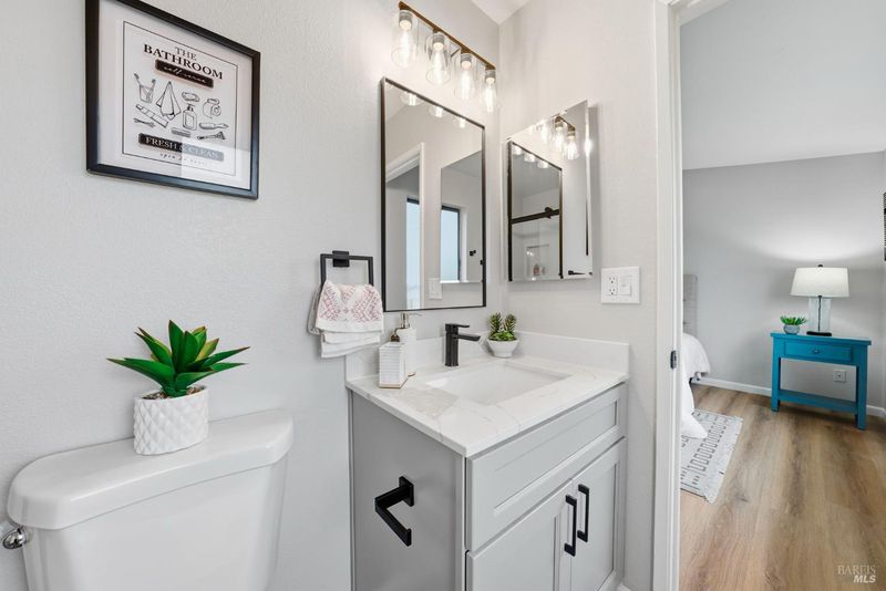 Extensively renovated two-story home with modern upgrades and a generously sized front lot offering rare flexibility. The property showcases refreshed front and back landscaping and a full exterior repaint using premium Sherwin-Williams paint. Inside, the home has been completely refreshed with new interior paint and modern luxury vinyl plank flooring throughout, delivering a clean, contemporary feel. Upstairs features two fully remodeled bathrooms, including an ensuite and a hallway bath, both updated with stylish modern tile, new vanities, and coordinated matte black fixtures. Additional upgrades include new interior closet doors, new exterior doors, updated electrical outlets, and numerous thoughtful improvements throughout the home. One of the standout features is the exceptionally long front yard and driveway area, which may offer potential for RV or additional vehicle parking (buyer to verify). Located adjacent to local schools and nearby amenities, this turnkey home offers both comfort and versatility rarely found at this price point.