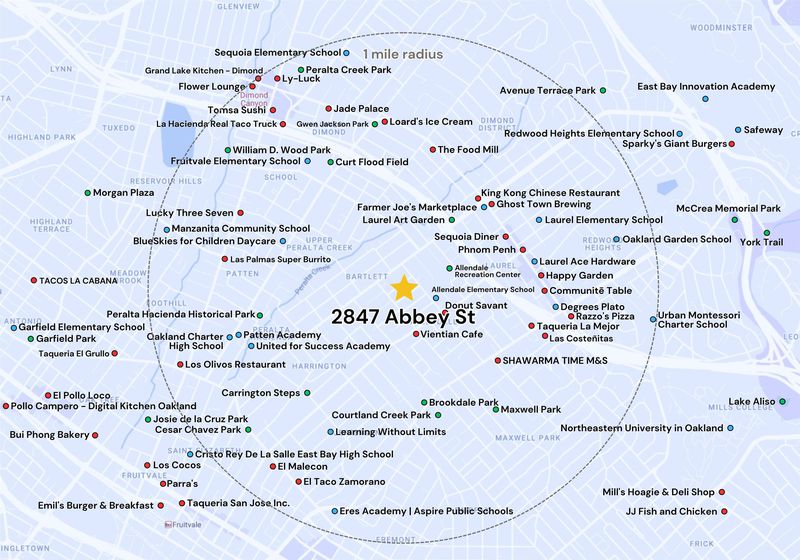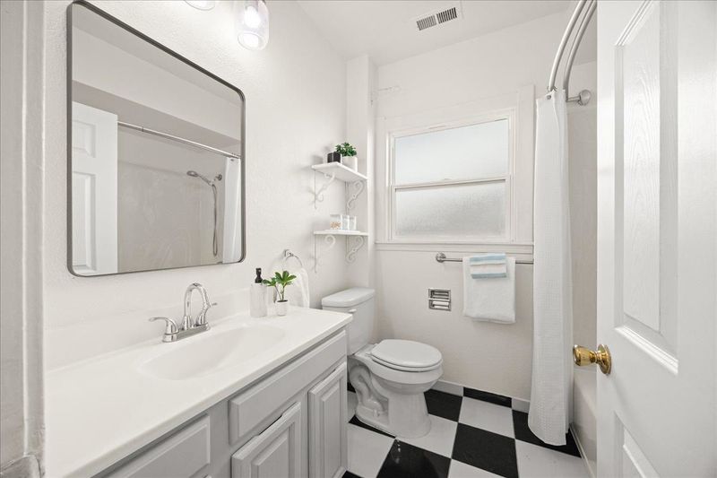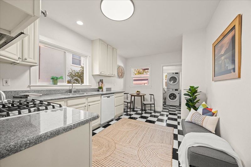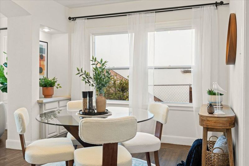Stylish and inviting, this charming Allendale 3 bedroom 1.5 bath bungalow features hardwood floors throughout and a light-filled living room with cozy fireplace. The dining room has built-ins, perfect for both everyday living and entertaining. The eat-in kitchen boasts a fun checkerboard floor, ample prep space, and a convenient half bath for guests. The primary bedroom offers privacy and separation from the other bedrooms, creating a peaceful retreat. There are 2 other nicely sized bedrooms and a full bathroom with a shower over tub. Stackable washer/dryer. Step outside to a large tranquil backyard with a covered patio and plenty of room for gardening, relaxing, and hosting gatherings. Detached garage plus lots of storage! Enjoy lemon, mandarin and apple trees and California poppies. Updates include owned solar, dual-pane windows, new roof on garage, main roof 10yrs, refinished hardwood floors, seismic strengthening ++ Conveniently located near restaurants and amenities. Vientian Cafe, Ghost Town Brewery, Donut Savant, Sequoia Diner, Farmer Joes + Close to the Laurel and Fruitvale districts, Alameda, and 580 Freeway. 1.5 miles to BART. Don’t miss this wonderful opportunity!