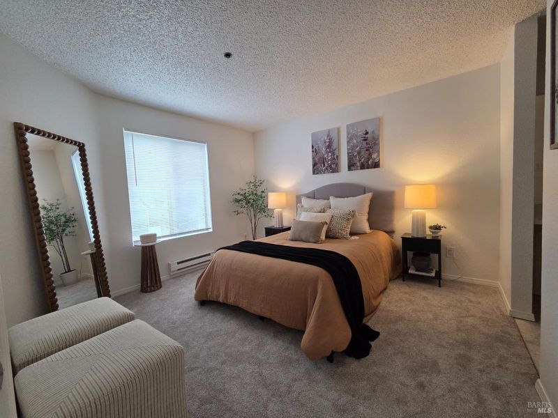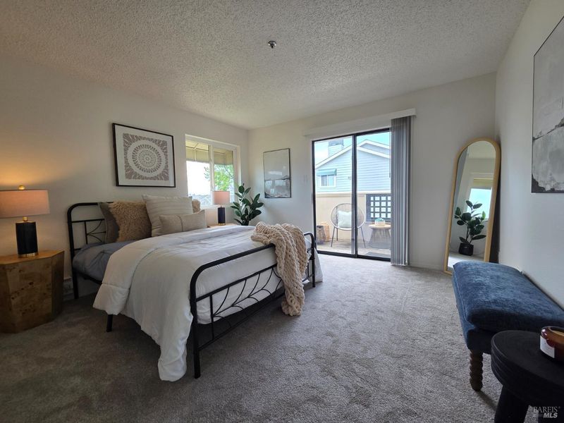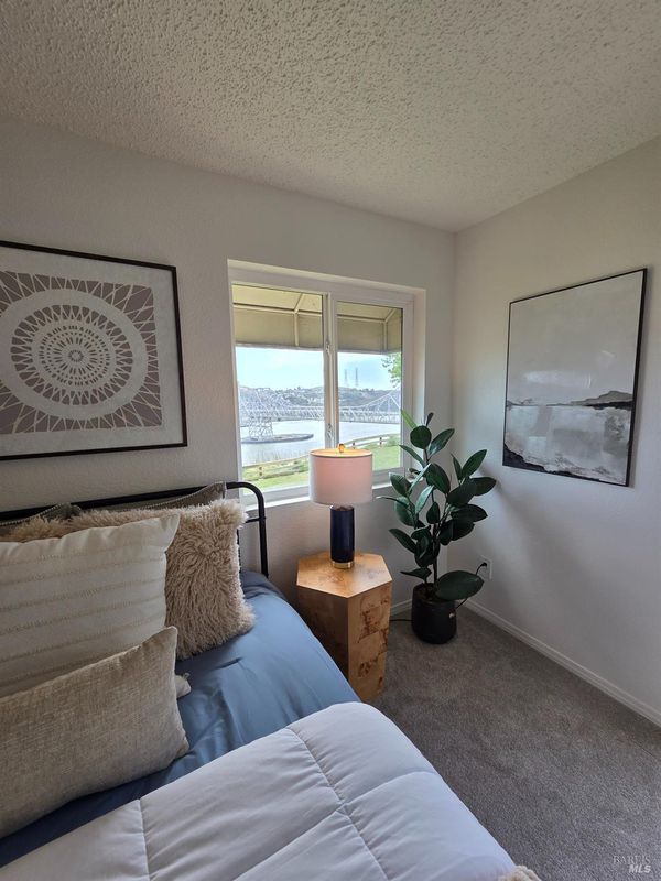 This desirable upper level end-unit is ideally positioned on the water-view side of the community, offering both privacy and scenic surroundings. Views from Mt.Diablo to Mt.Tam from one of the bedrooms and balcony. Conveniently located just a short stroll from the pool, spa, gym and clubhouse. It combines comfort with lifestyle amenities. This home has been recently refreshed with new paint, carpet and flooring making it move-in ready.