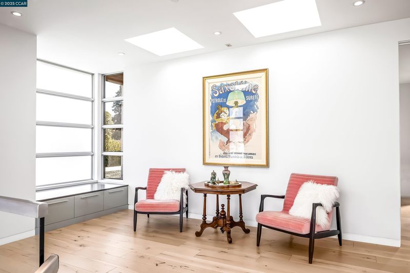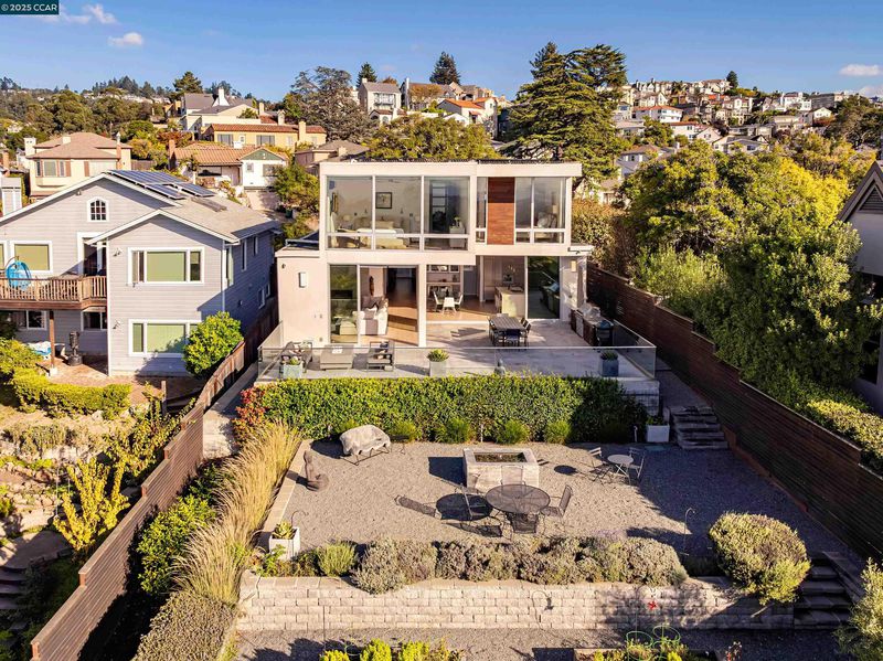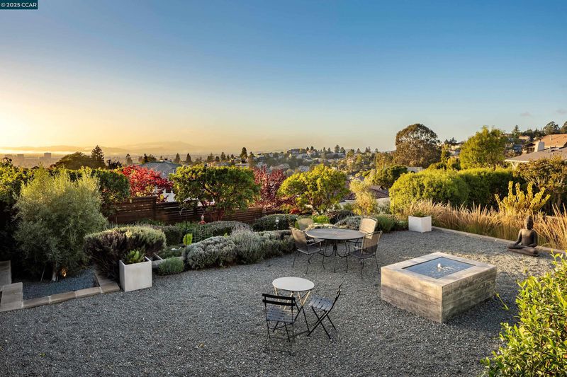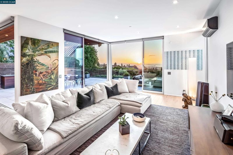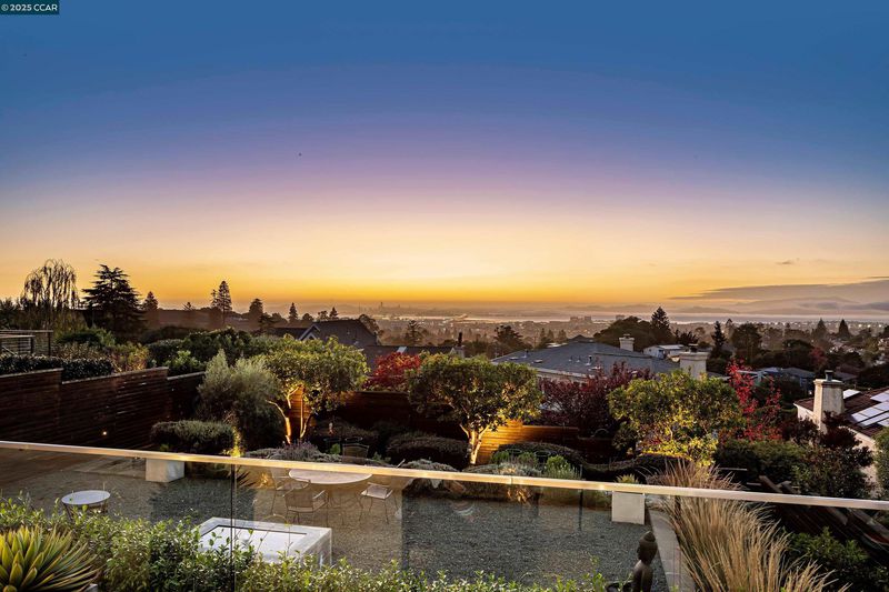 Whoever said “the best views of San Francisco are from Oakland” had this home in mind. It looks across the Bay at the City, Golden Gate, Bay Bridge and Mt. Tam. The kitchen, dining area and living room all look out through 10-ft floor-to-ceiling windows and sliders. The deck is an entertainment hub (with an elite speaker system) for gatherings large and small. The open-concept kitchen has every amenity, including a La Cornue range, Gaggenau steam oven, custom cabinetry, Neolith counters and an island (with seating for 3 at a breakfast bar). A spacious pantry and wine cellar sit adjacent. The Duchateau flooring throughout looks like new. The home offers 4 BRs and 4-1/2 BAs. The bedroom on the lower level is ideal for guests. Upstairs are 3 bedrooms with private baths. The principal suite has unobstructed views of the Bay (as does the adjoining bedroom). Its bath has an oversized rain shower, heated towel racks, soaking tub and dual sinks, all under skylights. Family and friends will gather in the spacious living room, warmed by an oversized fireplace and radiant heating. A well-appointed office on the main floor makes work from home a pleasure. The home also offers a spacious and peaceful garden, 20 solar panels and a car-charging station in the garage.