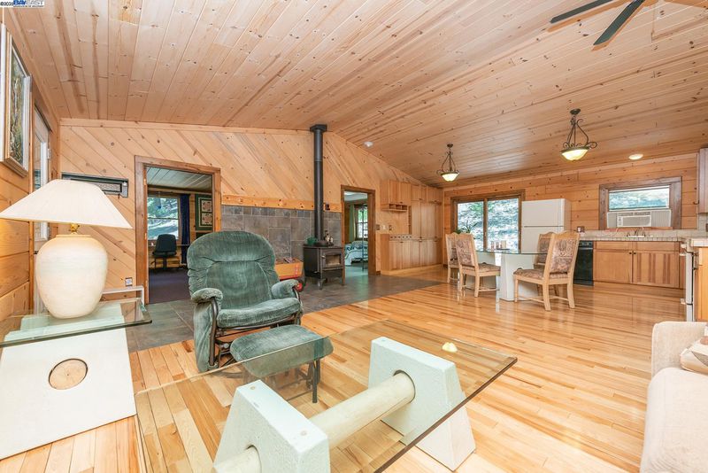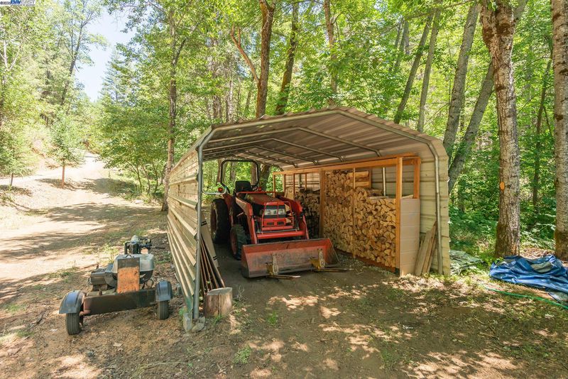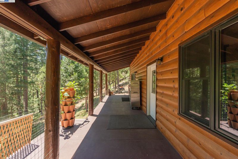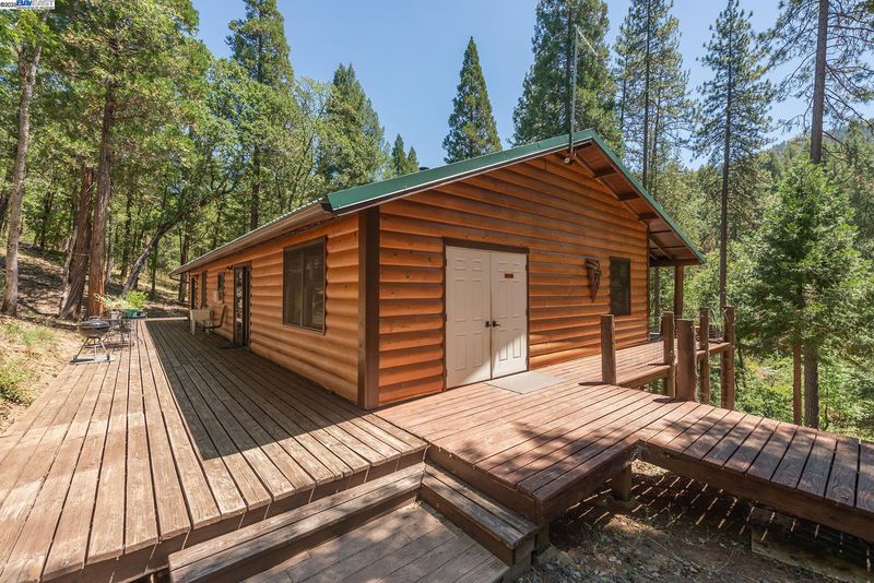 Hidden in the woods on 40 acres with year round creek frontage, the home offers 4 bedrooms and all with detailed woodwork, one bedroom has Dogwood, Chinquapin and Pine wood work, as well as all bedrooms have sliders leading to the wrap around decking. The main part of home features an open concept, vaulted ceilings of T & G Knotty Pine, hardwood flooring, Slate tile flooring at the entry and surrounding the wood stove. The dining room comes complete with a wall of built in cabinets and slider to the deck. Kitchen has custom Ash hardwood cabinets, tile counter tops and vaulted ceilings. The bathroom also has custom title work, tile shower and a Japanese soaking tub . The wrap around porch creates many possibilities for outdoor entertaining, also a studio down stairs with great lighting could be great for an art studio. A basement area with two storage rooms for all supplies needed or for all the canning that will be done from the 700 sf fenced-in garden area. The setting is enchanting down by the creek, and all the defensible space clearing that has been done on the property is very impressive. Water is pumped from the creek & all necessary filtration system in place.