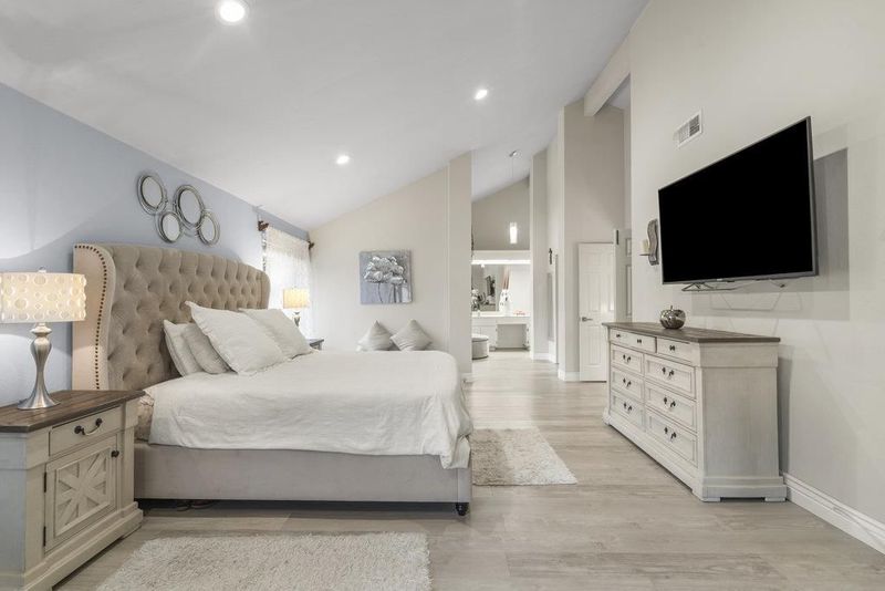 Stunning Home. Grand four-bed 2 1/2-bath floorplan w/ soaring ceilings in living and abundant natural light. The huge kitchen features an island and ample cabinet space. Family room with a wet bar and a fireplace. Oversize primary suite w/ vaulted ceiling, walk-in closet, and fireplace, jetted tub in bathroom and stall shower. Everything has been remodeled and updated. Beautiful backyard with patio, a lighted pergola, mature foliage, including fruit trees, and a pa. Excellent commute location. Come see why life is better in Morgan Hill.
