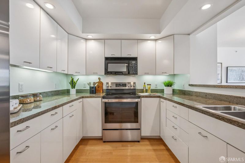 This spacious, contemporary one-bedroom condo is located in the exquisite Arundel, a well-maintained modern doorman elevator building in the heart of San Francisco's coveted Russian Hill. It has incredible natural light and hardwood flooring throughout. The expansive floorplan is perfect for comfortable living and entertaining, featuring a gracious front foyer, open dining and living room with large bay windows, gourmet kitchen with granite counters and a pass through to the dining area. Additional amenities include in-unit laundry, abundant storage space (including a walk-in closet off the bedroom), one car side-by-side parking and a private storage closet in the attached common garage. There are sweeping Golden Gate Bridge and City views from the shared roof deck and a lovely landscaped common garden courtyard. With a Walker's Paradise Score of 99, this chic and sunny condo with an unbeatable location is just steps away from the fabulous cafes, restaurants, shops, fitness studios, and charming local boutiques along vibrant Polk Street.