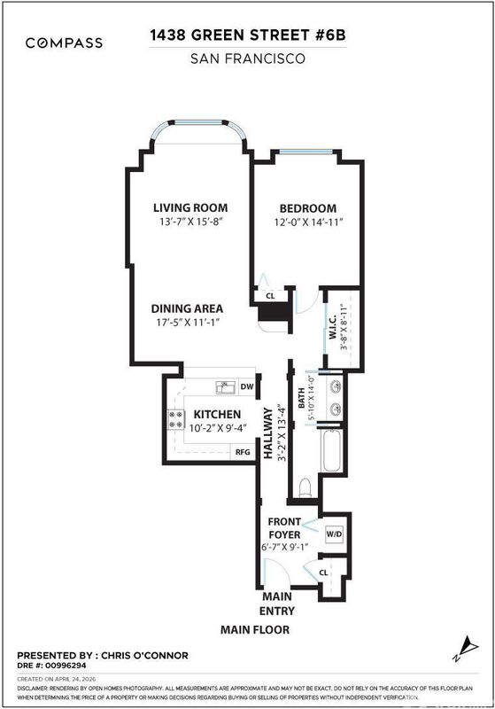 Prime Russian Hill Location.1 Bedroom 1 Bathroom Light-Filled, Open Floor Plan. Walker’s Paradise: 99 Walk Score