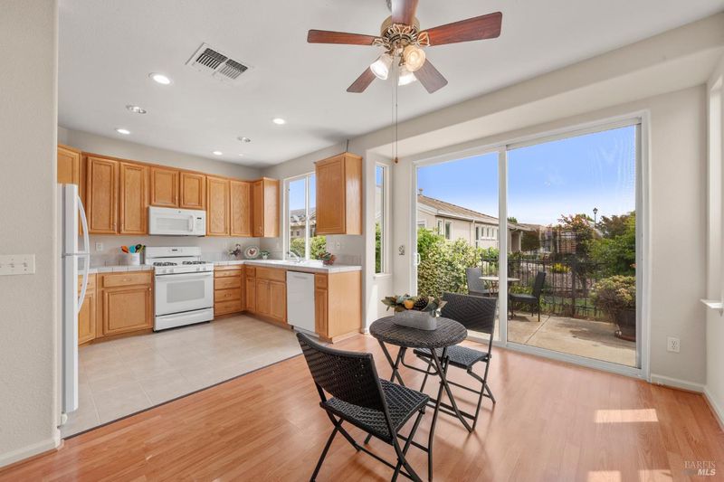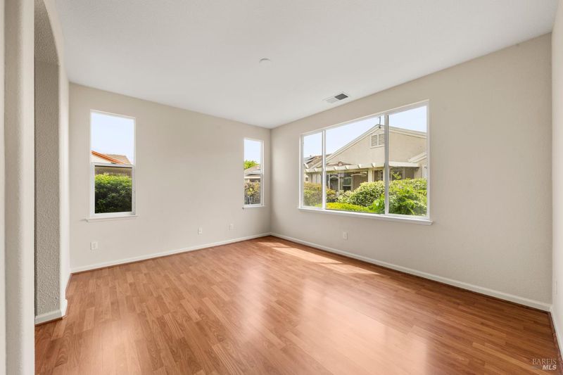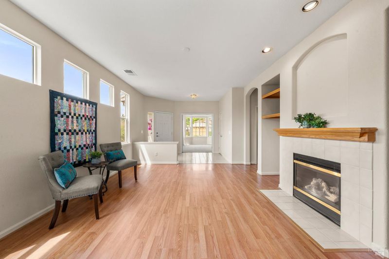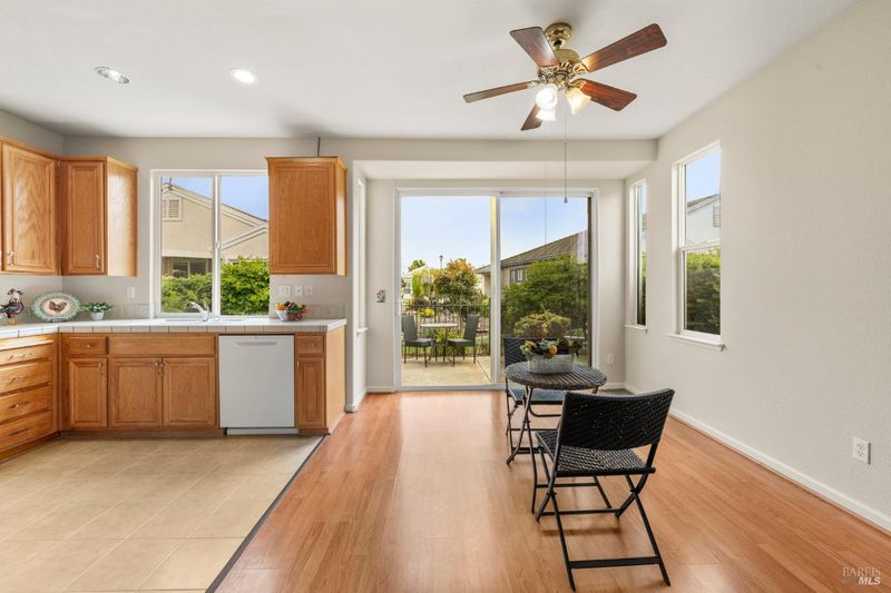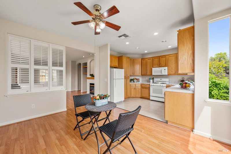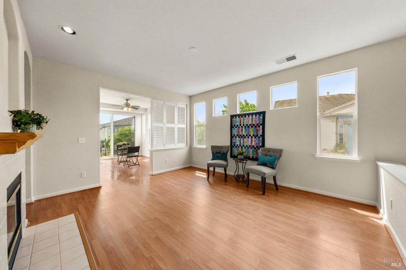 Mature landscaping greets you as you walk toward the front door of this nicely appointed Spinnaker floor plan with laminate flooring throughout most of the home, tile in kitchen and entry, living room gas burning fireplace, and oak cabinetry. This home is freshly painted inside and ready for immediate move in. The primary suite includes a walk in closet and double sinks in the bathroom. The den/office at the front of the home is a cozy spot adorned with a bay window. The back yard has a lovely patio that is surrounded by lush landscaping that provides privacy. Trilogy is a 55+ community, and this is a fabulous home from which to enjoy the abundant activities and amenities of the Trilogy lifestyle!