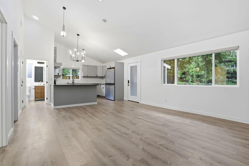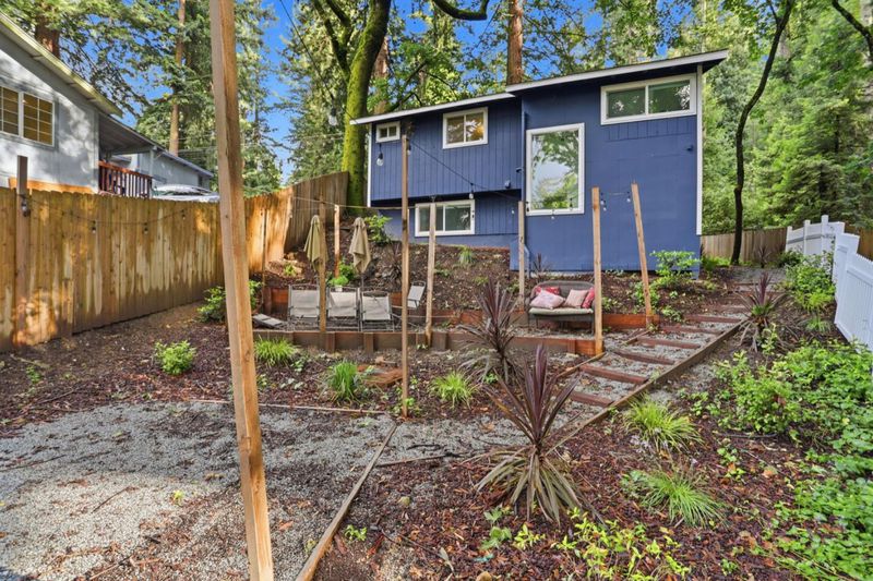 Nestled inside the Los Gatos redwoods, this beautiful ranch home of 1371sqft, features 2 bedrooms, 2.5 bathrooms, and 2 bonus rooms. The gourmet kitchen features clean, cool tones, quartz countertops, an electric Maytag range/oven and whirlpool refrigerator. The kitchen opens up to a cozy dining and warm living area. The inviting living area is accented with vaulted ceilings, and plentiful natural light streams in from the skylights and large windows. The electric fireplace anchors the room. There are two bedrooms (one is a suite) off the ground floor, and a half bathroom with laundry area. The lower floor features an open office/bonus space, a room with a large window, and the large semi-finished storage area. Hardwood floors throughout. Current upgrades include: a HVAC system with Nest thermostat, new paint, window shades and screens, and a new fence. Public water and PG&E services. Septic. The home is immaculate, and an excellent investment property with strong income potential for both long and short term (Airbnb) rentals. Excellent school district - Los Gatos Saratoga. Fifteen minute commute to downtown Los Gatos or downtown Santa Cruz. Enjoy the fresh air, immense redwood trees, and spectacular views in this peaceful woodland retreat.