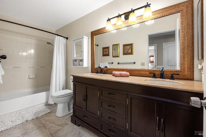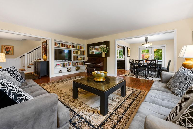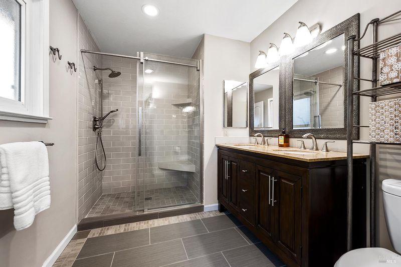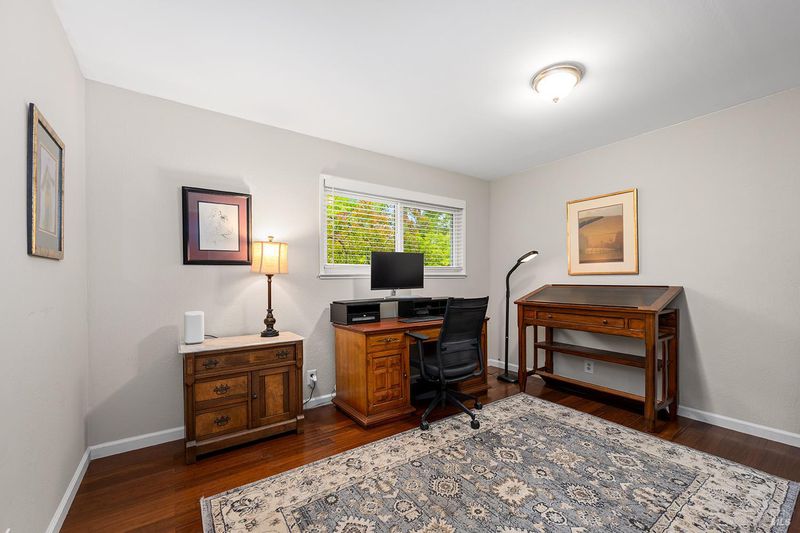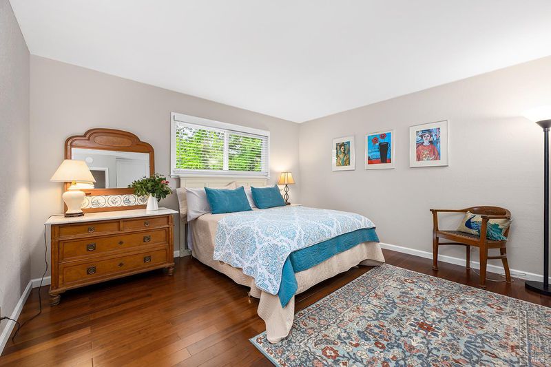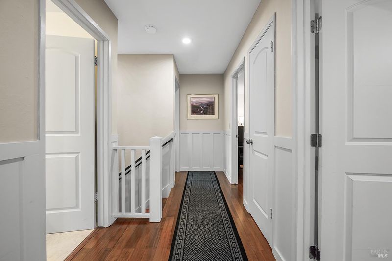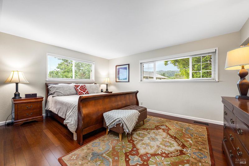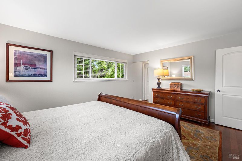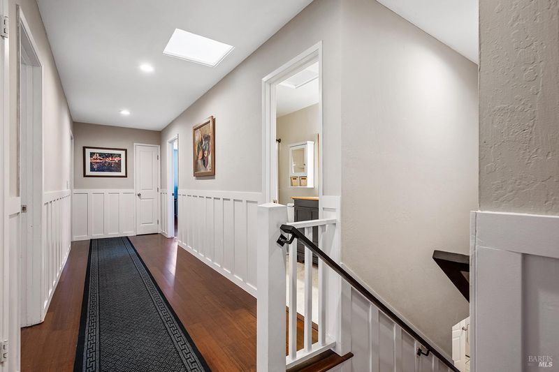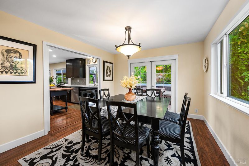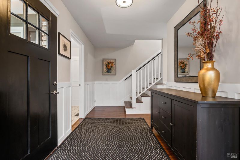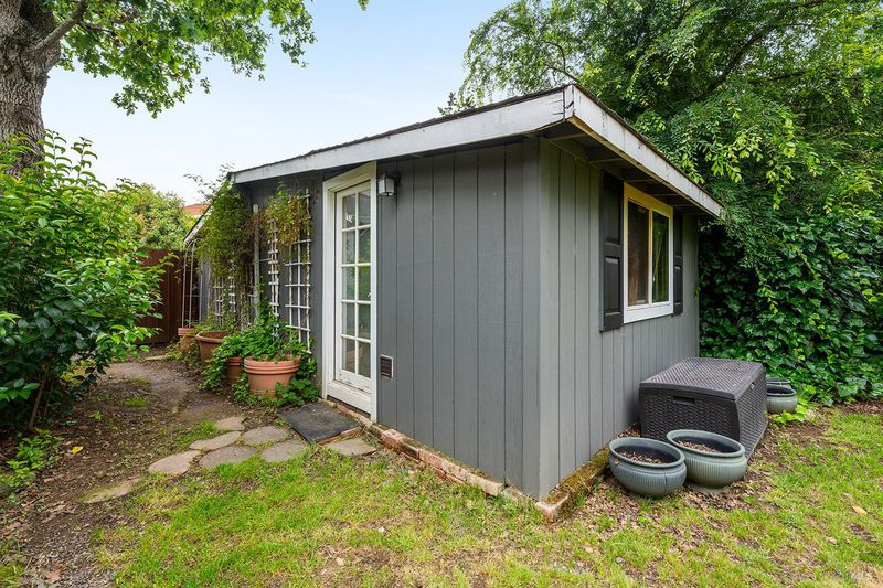 Tucked away at the end of a private driveway shared with just four other homes, 722 Sutro Avenue offers a rare combination of privacy, space, and a truly exceptional outdoor setting. The expansive, park-like backyard is a standout feature, thoughtfully designed with a gazebo, swim spa, multiple storage sheds, lush lawn, mature fruit trees, and a spacious deck, creating the perfect environment for enjoying the outdoors year-round. Inside, the home features a functional and inviting layout with an open-plan eat-in kitchen complete with a freestanding island, abundant counter space, and seamless flow into the adjoining family room with a cozy fireplace and direct access to the rear garden. A formal dining room also opens to the yard, enhancing indoor-outdoor living, while the separate living room offers built-in shelving and a comfortable retreat. Stained bamboo floors add warmth and character throughout the main level, which also includes a convenient half bath and dedicated laundry room. Upstairs, you'll find five generously sized bedrooms and two full bathrooms, including a spacious primary suite with a walk-in closet. Additional highlights include a charming front porch, ample off-street parking for four or more vehicles, a two-car garage, and leased solar with battery backup for energy efficiency and peace of mind. Set in a peaceful location with exceptional outdoor amenities and versatile living spaces, this home presents a unique opportunity to enjoy both comfort and privacy in a desirable Novato setting.