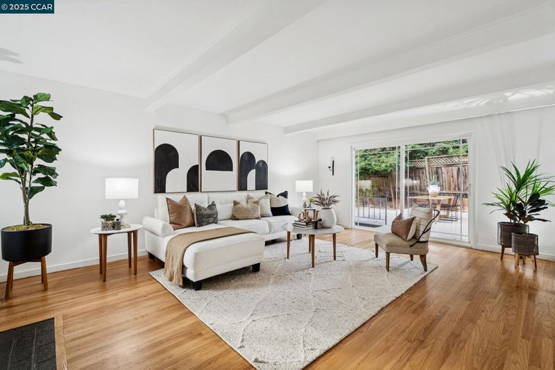 Set in a prime Lafayette location, this inviting single-story home offers comfort, style, and convenience. Step inside to an open concept layout with hardwood floors throughout, offering a warm and cohesive feel. An updated kitchen includes quartz countertops, stainless steel appliances, and new herringbone-patterned tile flooring. The spacious dining area sits beside a striking floor-to-ceiling brick fireplace, creating a focal point for everyday living and gatherings. Fresh interior and exterior paint enhance the property’s clean, move-in-ready appeal. Multiple decks provide versatile spaces for entertaining or relaxing outdoors, surrounded by mature trees. Close to town, trails, and award-winning schools, this home combines thoughtful updates with an ideal location.