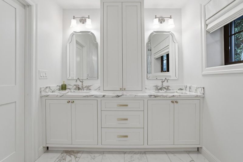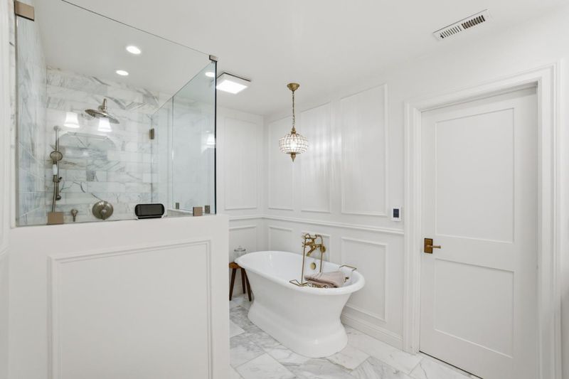 - Double Sinks, Marble, Primary - Oversized Tub, Primary - Stall Shower(s), Shower over Tub - 1, Stall Shower, Updated Bath