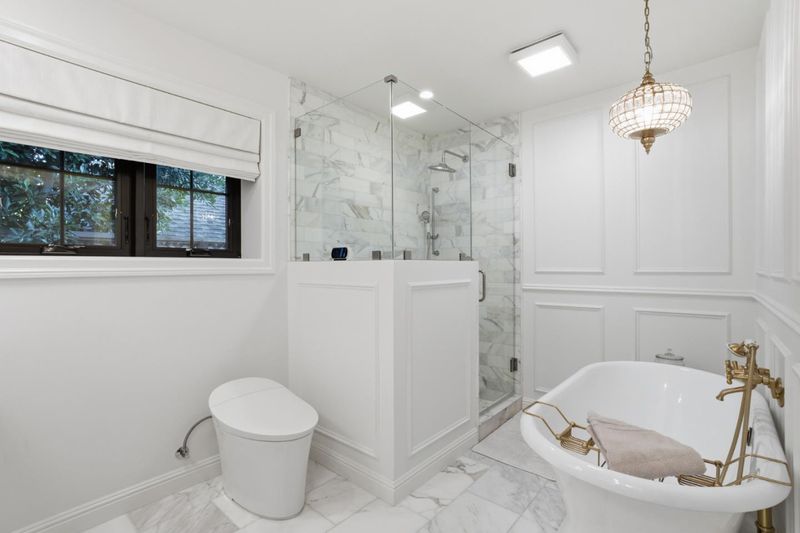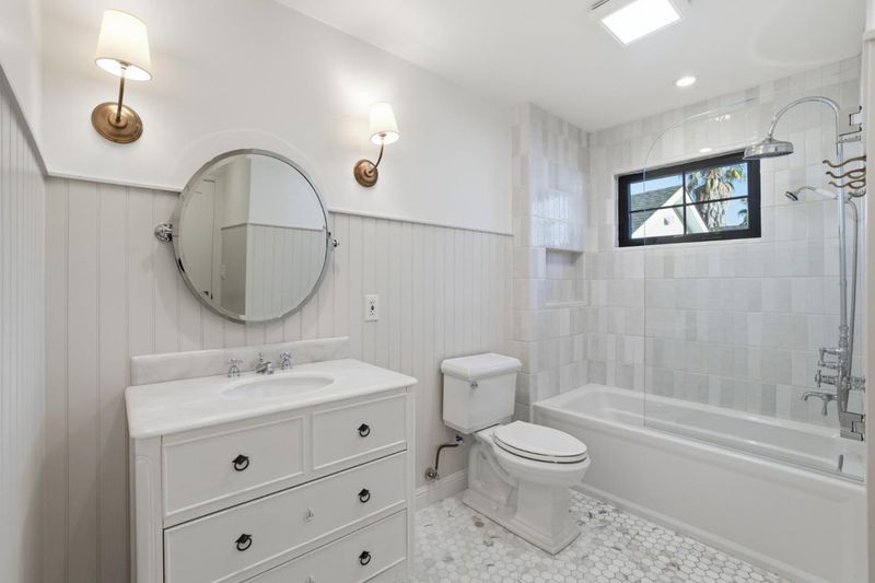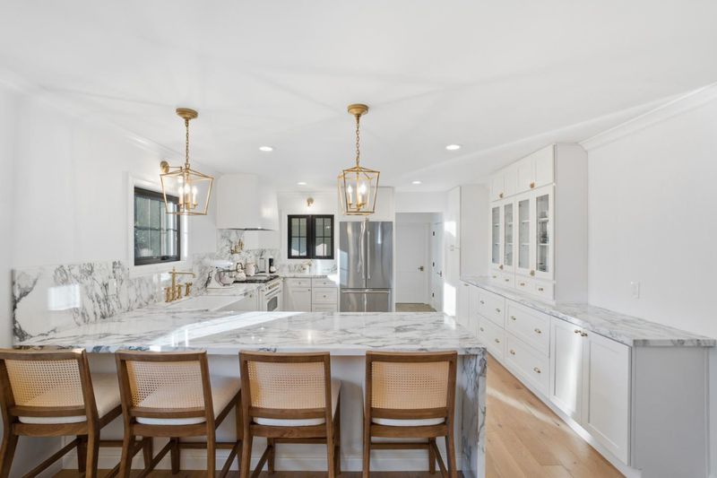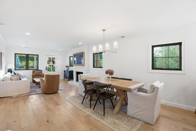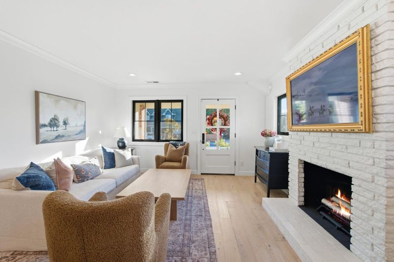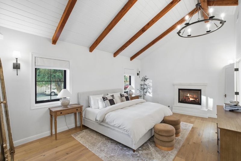 This beautifully remodeled home blends timeless European-inspired design with modern California living. Crafted with refined materials and luxurious details, it showcases Atherton-level quality that will impress the most discerning buyer. The open-concept layout welcomes you with gorgeous white oak floors flowing throughout. The chefs kitchen is a showpiece with marble countertops, a waterfall-edge breakfast bar & high-end appliances including an ILVE Italian gas range with pot filler, Bosch dishwasher & fridge, Kohler apron sink & custom white cabinetry. The kitchen opens to the dining area and living room with a cozy fireplace. The primary suite is a serene retreat with vaulted wood-beam ceilings, Parisian limestone fireplace, walk-in closet & spa-inspired bath with marble dual-sink vanity, heated floors, oversized shower & soaking tub. 2 additional beds, including one ensuite, plus a 3rd full bath offer comfort & flexibility. The landscaped yard features a patio & outdoor barbecue area ideal for dining al fresco. A finished detached two-car garage includes a bonus room with private entrance & full bath - perfect for guests, home office or gym. Additional highlights include A/C, full-size laundry room, Anderson windows, recessed lighting, and sleek modern finishes throughout.