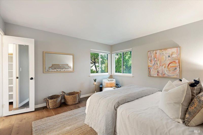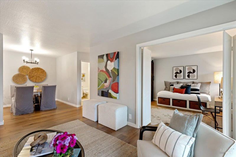 Welcome to 1417 Marchbanks Drive, Unit 4 a well-maintained 2-bedroom, 2-bathroom condo offering 950 square feet of comfortable, modern living in a prime Walnut Creek location known for its natural setting and convenience. Step inside to find beautiful hardwood flooring throughout, updated windows and doors, and a flexible floor plan designed for today's lifestyle. The second bedroom features accordion doors, allowing it to easily serve as a guest room, office, or cozy den. This unit has ample storage and is the largest of the complex. Enjoy a full suite of HOA amenities, including a pool, clubhouse with pool table, community BBQ area, fitness center, sauna, and park-like grounds. Diablo Hills Golf Course sits just behind the complex, adding to the serene setting. The assigned parking space is conveniently located nearby, with plenty of additional guest parking available. A detached storage locker provides extra space for your belongings. Conveniently located near John Muir Hospital, Heather Farm Park, hiking trails, and vibrant downtown Walnut Creekwith its shopping, dining, and BART accessthis home blends comfort, convenience, and community.