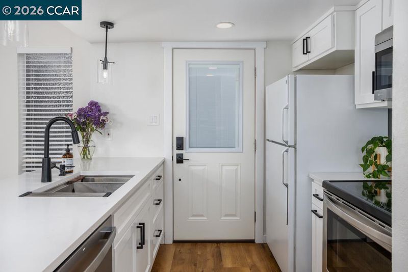 Dishwasher, Electric Range, Microwave, Refrigerator, Gas Water Heater, 220 Volt Outlet, Counter - Solid Surface, Electric Range/Cooktop, Updated Kitchen