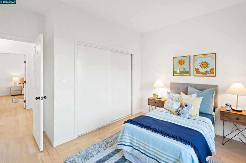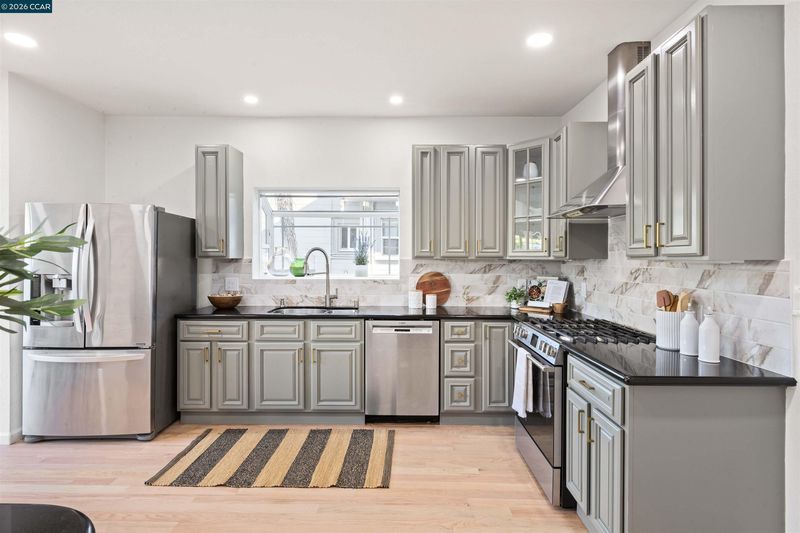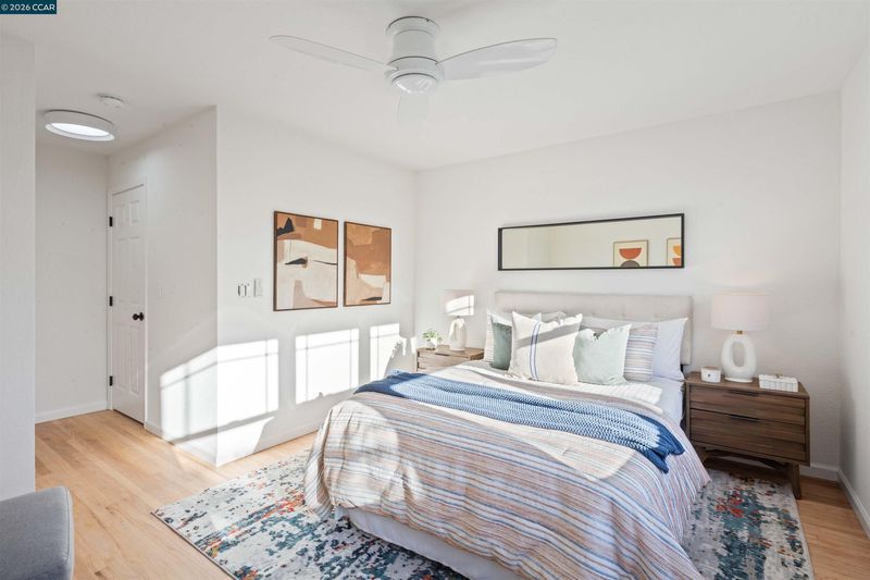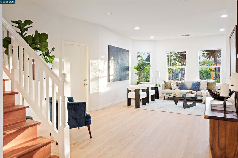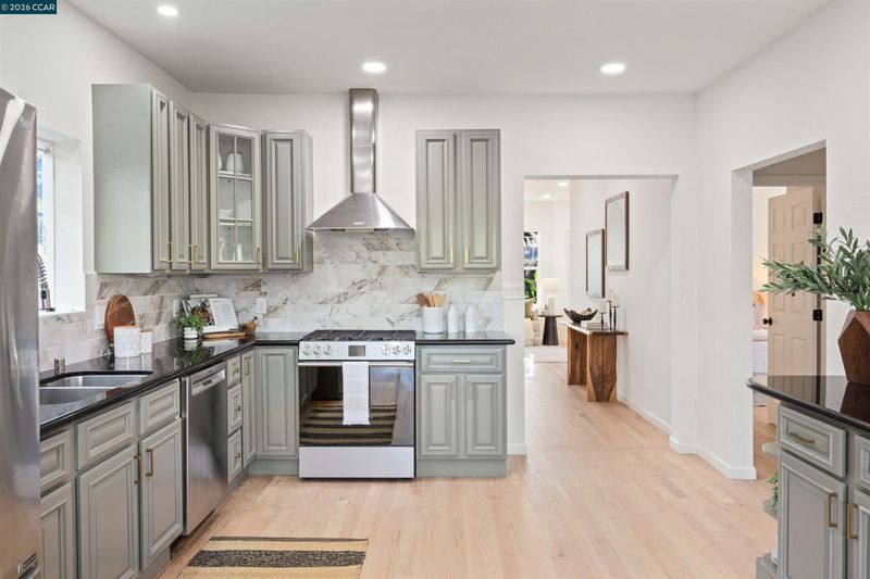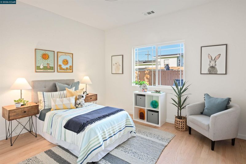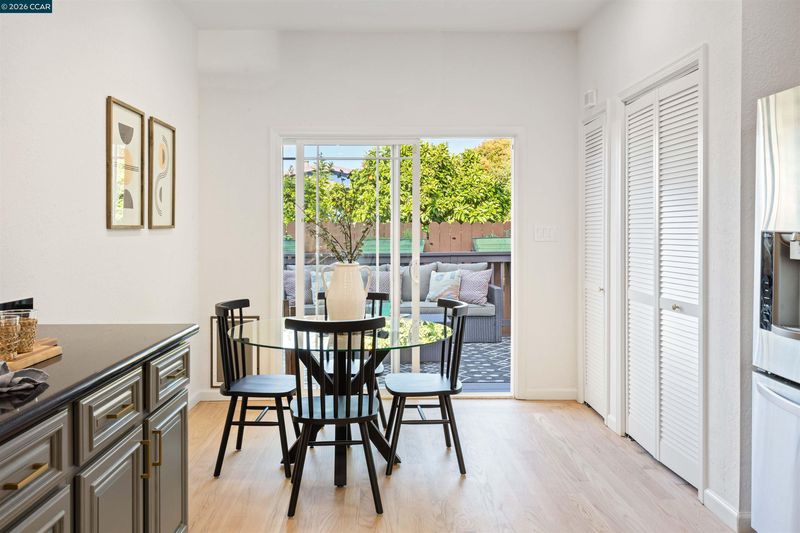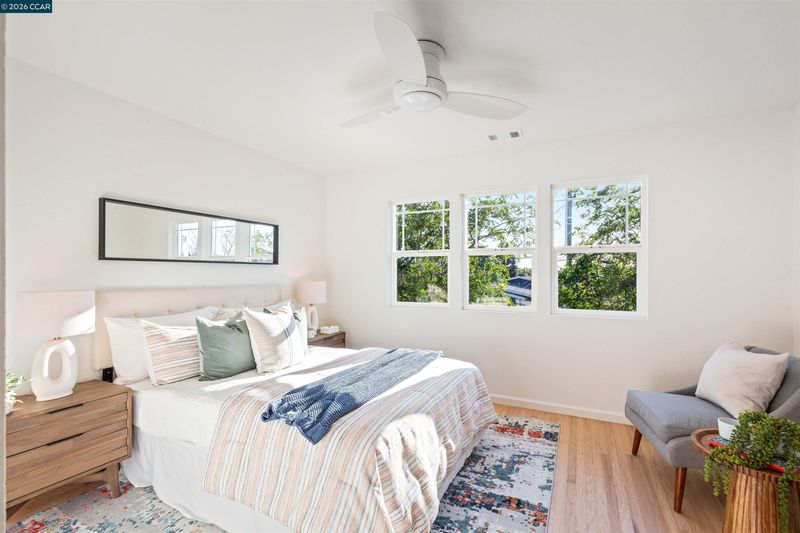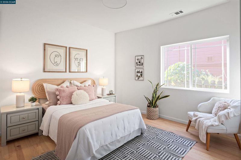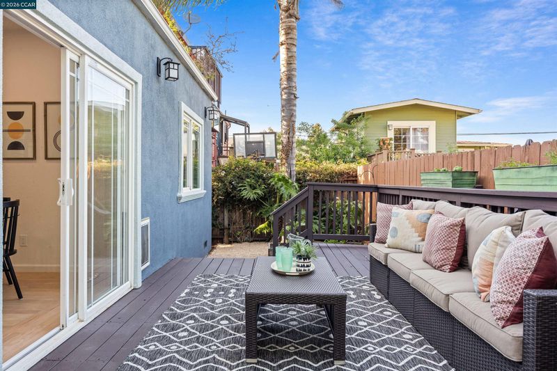 Welcome to 3131 Mabel Street in sought-after Southwest Berkeley, where charm, light, and thoughtful updates come together in a beautifully designed 3-bedroom, 2-bath home offering 1,272 square feet of inviting living space plus a large attached garage. Elevated ceilings and abundant natural light fill the open living and dining areas, creating a warm and connected flow ideal for everyday living and entertaining. The spacious eat-in kitchen features newly painted cabinetry with updated hardware, stainless steel appliances, granite countertops, designer tile backsplash, a garden window, and a built-in sideboard that adds both storage and ease for hosting. Two bright bedrooms and an updated hall bath are located on the main level, while the upstairs primary suite offers a private, light-filled retreat with its own updated bathroom, creating it's own suite. Just off the kitchen, a large deck extends to a refreshed backyard with garden beds, lush landscaping, and multiple fruit trees, perfect for relaxing, entertaining, or enjoying the Bay Area’s indoor-outdoor lifestyle. Beyond the home itself, the location offers a true sense of community. Enjoy nearby Mabel-Haskell pocket park just one block away, or head to San Pablo Park for tennis, basketball, open green space, and a large play structure. The Berkeley Greenway provides easy access to Berkeley Bowl West and Emeryville amenities. Local favorites include Creekwood, Paradise Park Café, Mujiri Sushi, and neighborhood staples along Sacramento Street. This vibrant neighborhood is known for its strong sense of connection, from block parties to festive Halloween celebrations, offering a welcoming environment with a diverse mix of families and community engagement. Additional highlights include a one-car garage with extra storage or flex space, fresh interior and exterior paint, updated lighting, and beautifully refinished hardwood floors. Ideally located near parks, shopping, dining, BART, and major commute routes. Home Energy Score of [3]