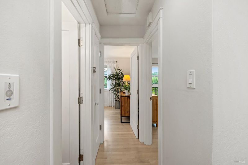 Sebastopol city living at its very best: quiet cul-de-sac location with Joe Rodota trail access just a skip down the street; stroll to restaurants, shopping, entertainment. A sweet sense of privacy and serenity in typical city density brings added value. An efficient 2 BR/1BA home has tasteful updates, a large living room, useful garage space, outdoor entertaining area, fully fenced landscaped. There's magic in the elegant terraced garden tucked like a secret at the end of the home. A sublime space for quiet contemplation.