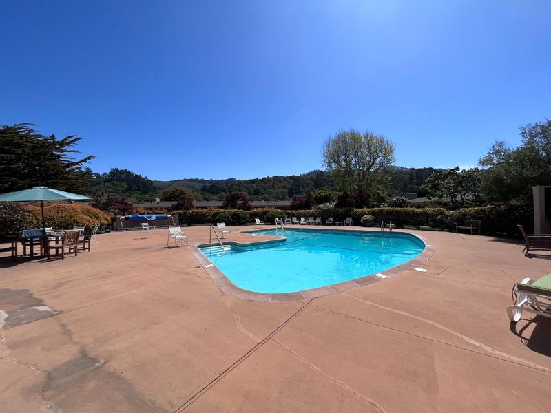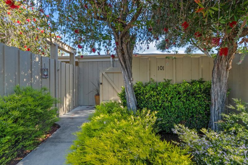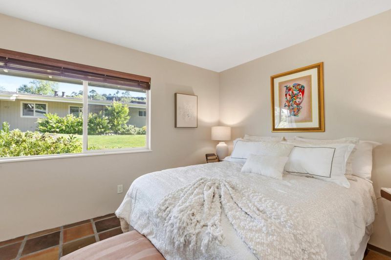Desirable end unit offering excellent parking, a custom fireplace, & convenient indoor laundry. Fully remodeled in 2021, this thoughtfully designed home embraces seamless indoor-outdoor living, perfectly suited to Carmel Valley's ideal climate. Bask in the sunshine on your private patio, complete with a Meyer lemon tree, olive tree, and vibrant flower beds, or unwind beside the custom natural gas Kiva fireplace on cool evenings. Authentic handmade Saltillo pavers from Mexico flow throughout the interior & extend into the spacious patio, enhancing the home's sense of openness & livable space. The kitchen features chiseled-edge granite counter tops & gas range with a warming hood. Additional highlights include Mission-style wall texture, a large glass slider in the living room, three skylights, plus walk-in closets in both bedrooms. The Hacienda Carmel residents enjoy amenities such as a heated pool, restaurant, dog park, community garden, walking trails, library and wonderful people.