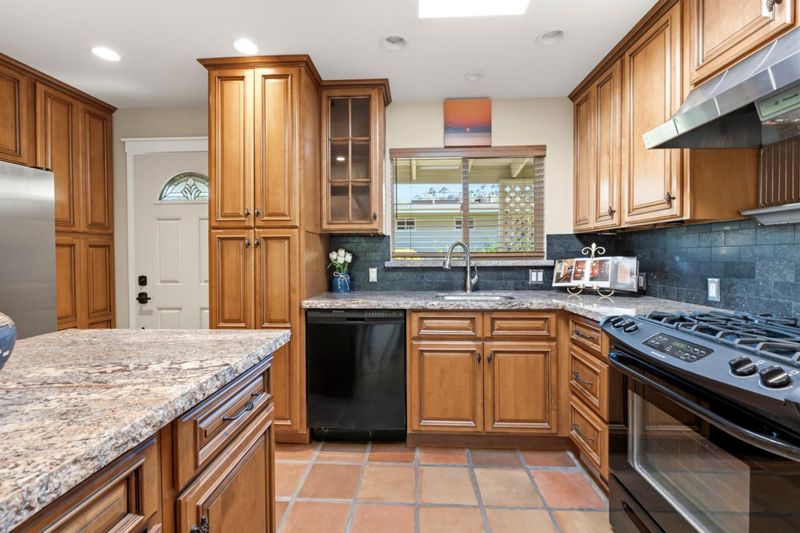 - Countertop - Granite, Dishwasher, Exhaust Fan, Garbage Disposal, Hood Over Range, Island, Oven - Gas, Oven - Self Cleaning, Oven Range - Gas, Pantry, Refrigerator, Skylight