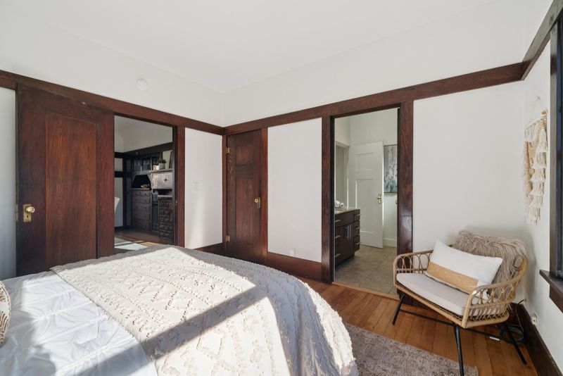 Quintessential Brown Shingle quietly set back from the street with a beautiful Magnolia tree providing privacy. Old world charm includes leaded glass built-ins in the formal dining room, gleaming refinished wood floors & tall, curved ceilings. Updated kitchen (with radiant flooring) and updated baths! Kitchen opens to a spacious, sunny back deck & fenced back garden. This is a duplex (per tax records) with 2+ bedrooms, 2 full baths upstairs / 1 bedroom, 1 bath down but lives primarily as a single family with an in-law. Loads of storage and off-street parking with a 2 car tandem garage. Open Sunday, January 18 from 2:00-4:30.