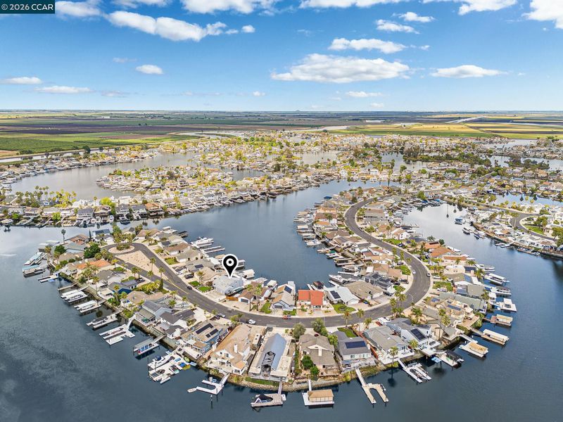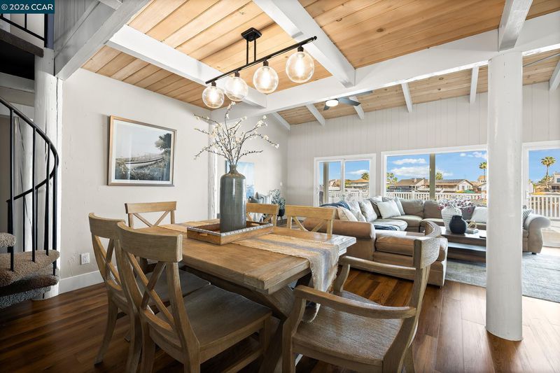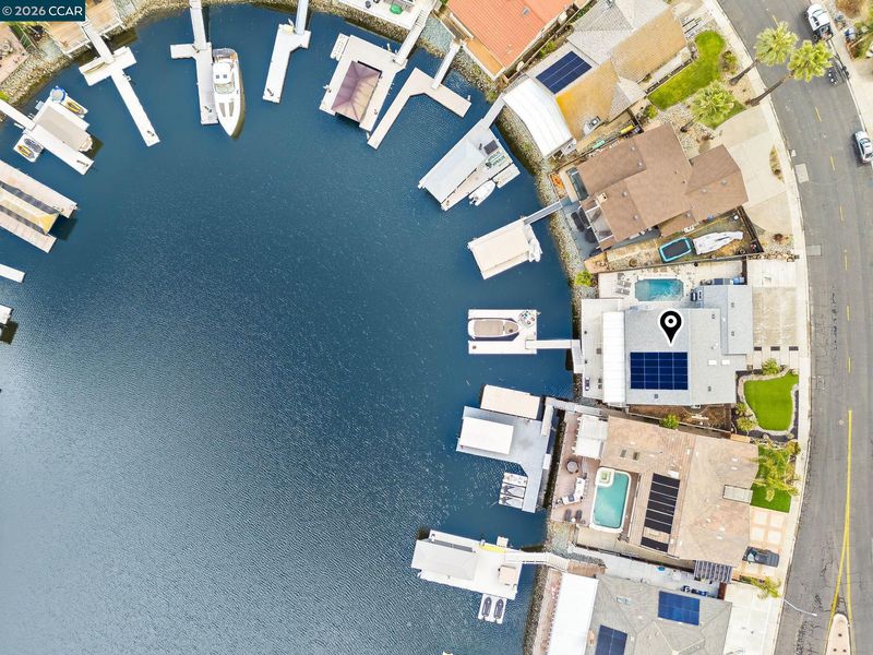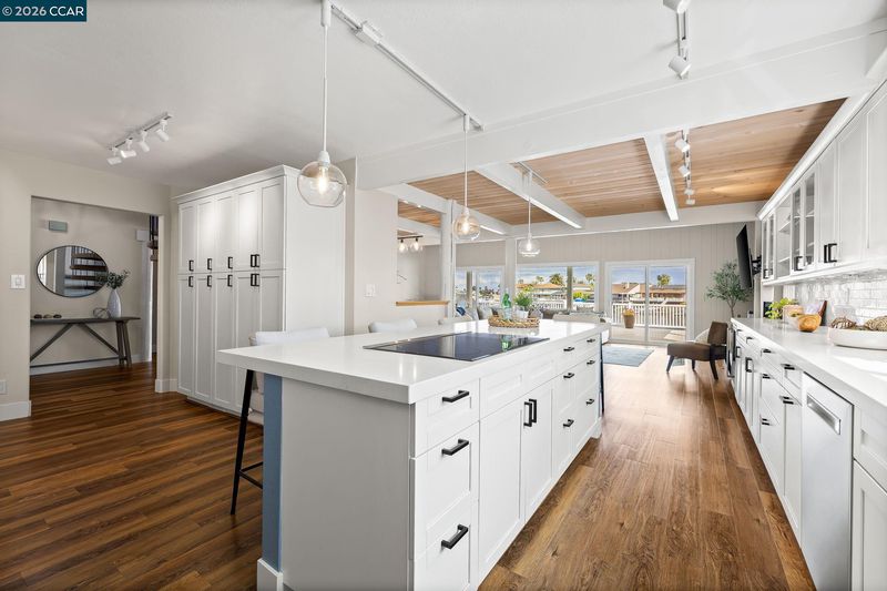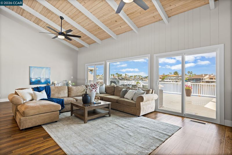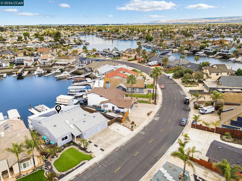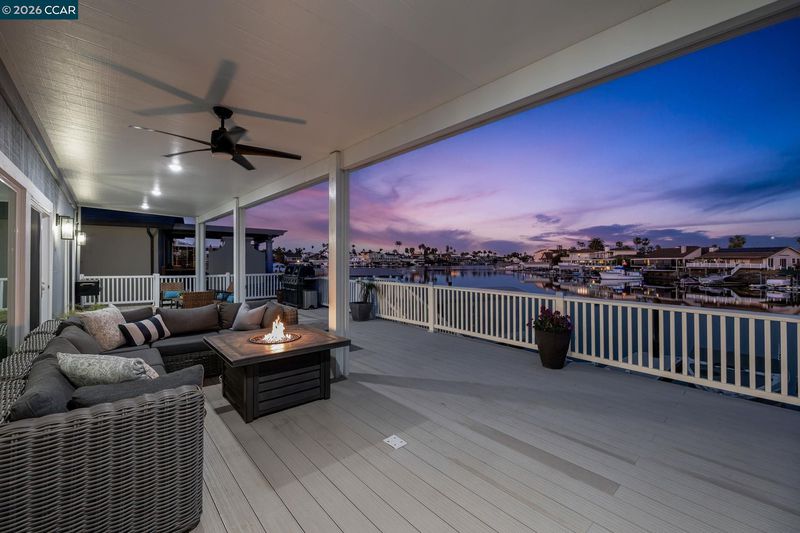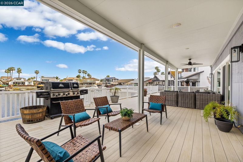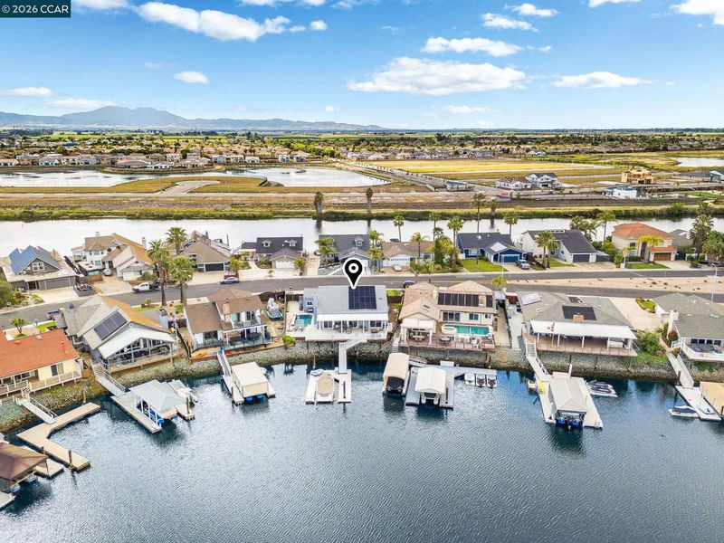 Waterfront home with a private boat dock, wide water views & quick access to fast water, paired with a rare in ground pool & extensive interior updates. Set within Cabrillo Bay on a wider section of the water with open sightlines & a desirable east facing rear exposure, this home captures the Discovery Bay lifestyle at its best. The main living areas are oriented to the view, with vaulted ceilings, exposed wood detail & expansive windows that bring in natural light. Multiple sliding doors open to a covered waterfront deck, creating a seamless indoor outdoor connection. The remodeled kitchen features shaker style cabinetry, quartz countertops, a large island with seating, double ovens, dual dishwashers, a beverage fridge & upgraded appliances, thoughtfully designed for both daily use & hosting. The main level includes the primary suite with direct access to the waterfront deck, a walk in closet & an ensuite bath, along with a second bedroom & full bath for added flexibility. The upper level offers a private retreat with an additional bedroom, full bath, loft or game area & finished attic space ideal for office, media or extended stays. Updated flooring, newer windows & modern lighting create a consistent, modern finish across the home. Outdoor living is where the property truly stands apart. The covered deck overlooks the water & connects directly to a private dock accommodating up to a 28.5 ft boat, making it easy to head out for a day on the Delta. A separate side yard features a newer in ground pool, creating distinct spaces to relax, entertain & enjoy the setting. Located in Discovery Bay, known for its waterfront lifestyle, boating & Delta access, the home is just minutes from the marina, yacht club, golf, local dining & Discovery Bay Elementary, offering a balance of recreation & everyday convenience. Owned solar with a grandfathered net metering plan & a 3 car garage with finished flooring add efficiency & functionality. A rare combination of water location, usable outdoor space, pool & thoughtful updates.