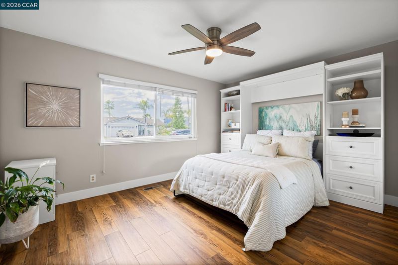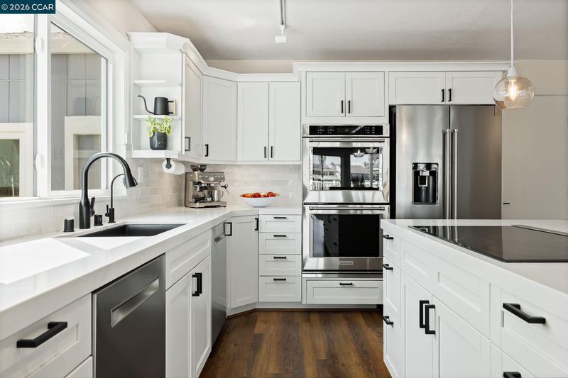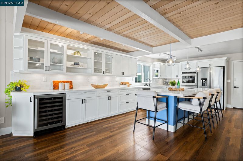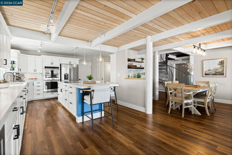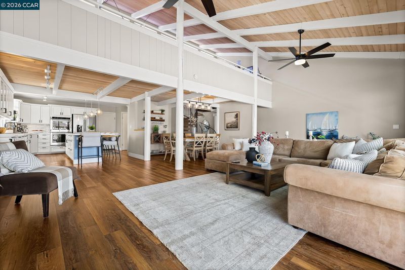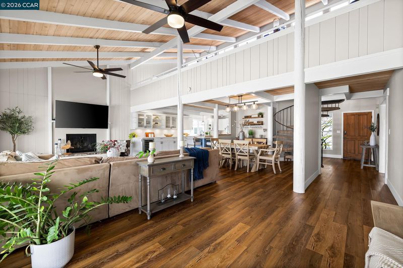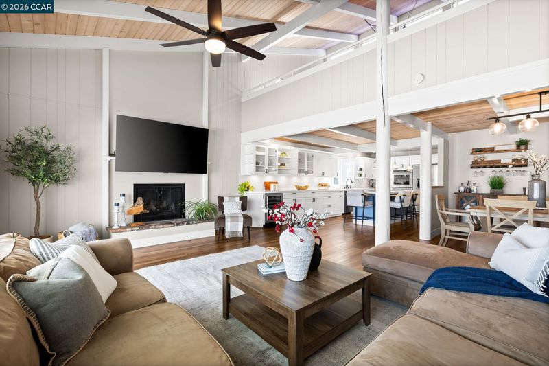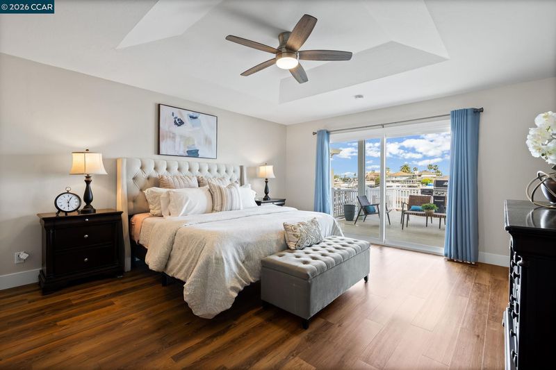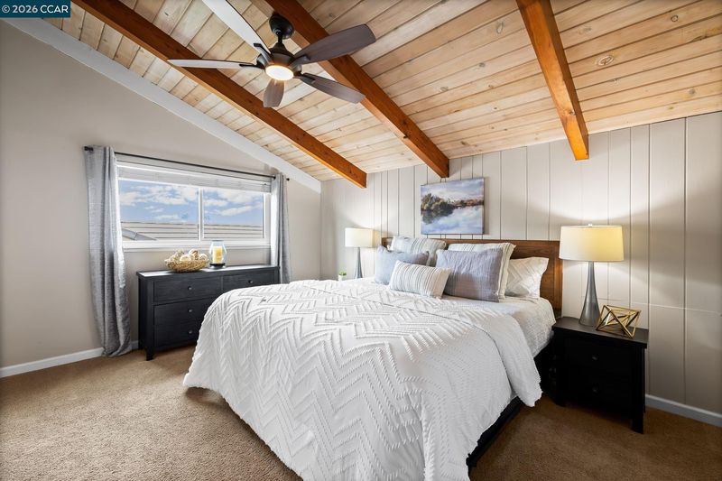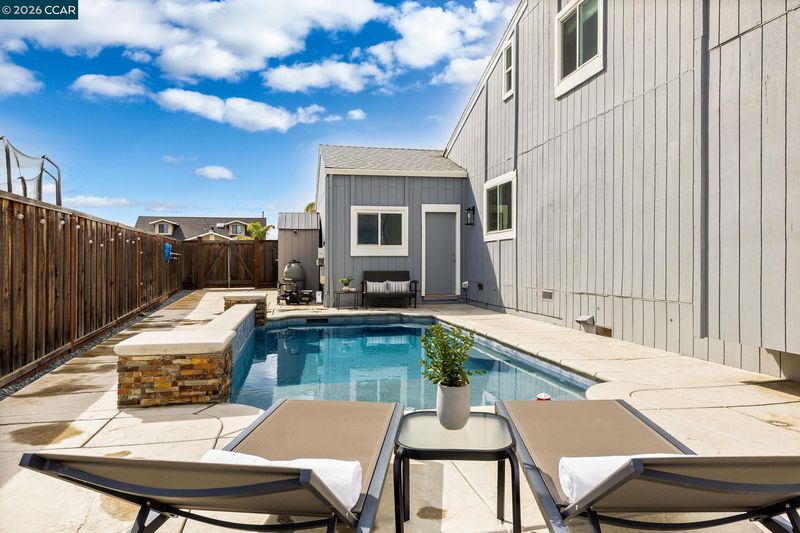 Waterfront home with a private boat dock, wide water views & quick access to fast water, paired with a rare in ground pool & extensive interior updates. Set within Cabrillo Bay on a wider section of the water with open sightlines & a desirable east facing rear exposure, this home captures the Discovery Bay lifestyle at its best. The main living areas are oriented to the view, with vaulted ceilings, exposed wood detail & expansive windows that bring in natural light. Multiple sliding doors open to a covered waterfront deck, creating a seamless indoor outdoor connection. The remodeled kitchen features shaker style cabinetry, quartz countertops, a large island with seating, double ovens, dual dishwashers, a beverage fridge & upgraded appliances, thoughtfully designed for both daily use & hosting. The main level includes the primary suite with direct access to the waterfront deck, a walk in closet & an ensuite bath, along with a second bedroom & full bath for added flexibility. The upper level offers a private retreat with an additional bedroom, full bath, loft or game area & finished attic space ideal for office, media or extended stays. Updated flooring, newer windows & modern lighting create a consistent, modern finish across the home. Outdoor living is where the property truly stands apart. The covered deck overlooks the water & connects directly to a private dock accommodating up to a 28.5 ft boat, making it easy to head out for a day on the Delta. A separate side yard features a newer in ground pool, creating distinct spaces to relax, entertain & enjoy the setting. Located in Discovery Bay, known for its waterfront lifestyle, boating & Delta access, the home is just minutes from the marina, yacht club, golf, local dining & Discovery Bay Elementary, offering a balance of recreation & everyday convenience. Owned solar with a grandfathered net metering plan & a 3 car garage with finished flooring add efficiency & functionality. A rare combination of water location, usable outdoor space, pool & thoughtful updates.