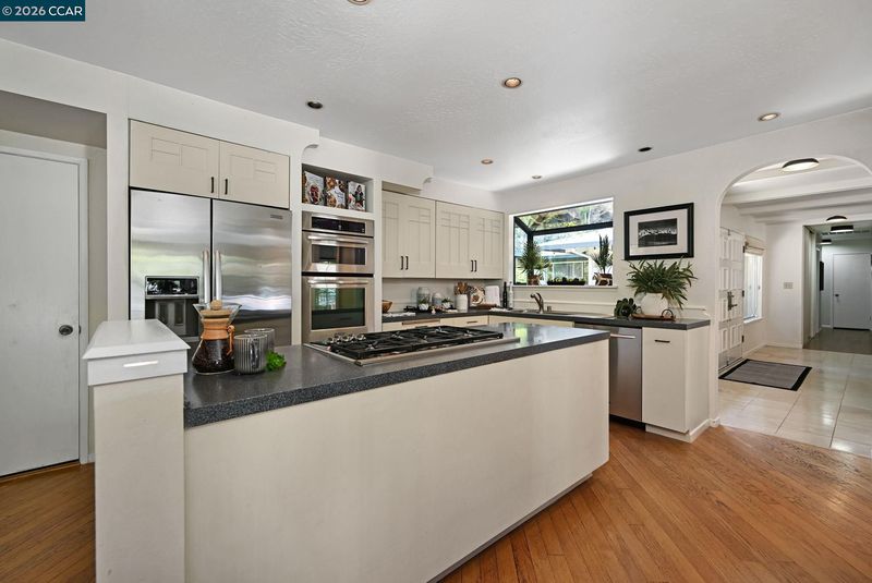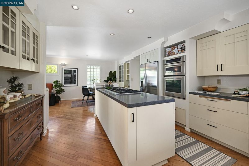 - Dishwasher, Gas Range, Microwave, Oven, Refrigerator, Dryer, Washer, 220 Volt Outlet, Counter - Solid Surface, Eat-in Kitchen, Disposal, Gas Range/Cooktop, Kitchen Island, Oven Built-in, Updated Kitchen