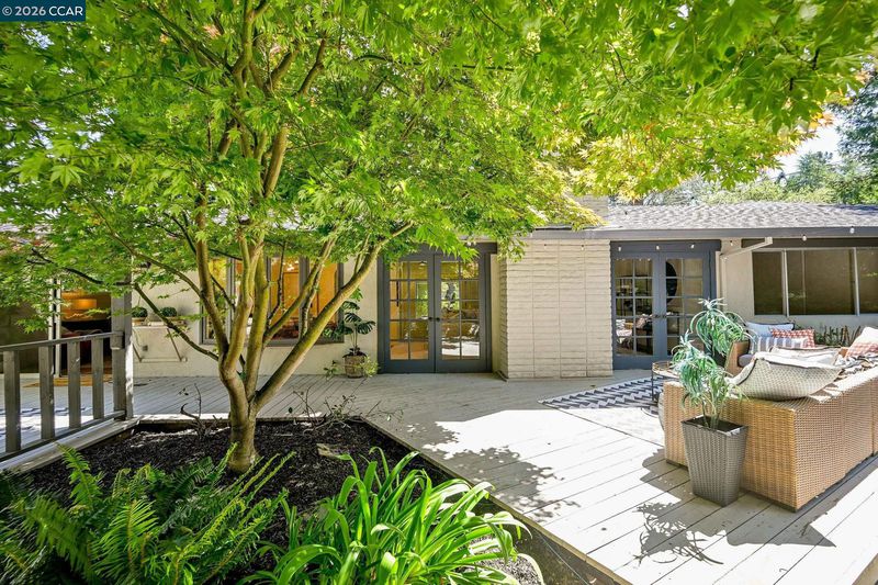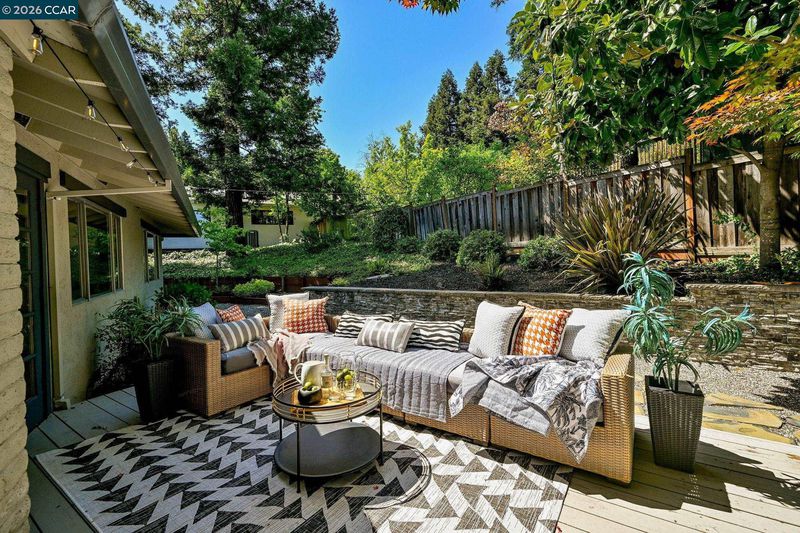 OPEN TUESDAY, 4/28, 10:30-2:00. This single-story mid-century rancher captures the essence of timeless California living. Nestled in Lafayette’s coveted Burton Valley, this 4-bedroom, 2-bath home spans approximately 2,009 square feet on a serene & private .25-acre corner lot, directly across from Burton Valley Elementary. A gated courtyard opens to a double door entry welcoming you into the expansive living room w/ fireplace & two sets of French doors. The dining room w/ archways & curved bay window overlooks the zen backyard. The floor plan is flowing & flexible offering everyone a place to relax & create. Inside, freshly painted interiors, rich hardwood flooring, new carpeting & new light fixtures create a warm, inviting backdrop, while expansive windows and French doors blur the line between indoors & out—welcoming in soft natural light & garden views from nearly every room. The thoughtfully updated kitchen features premium Thermador stainless appliances, custom cabinetry, & an effortless flow into the main living spaces, adjacent family room & casual dining—perfect for both quiet evenings & lively gatherings. Step outside and the home truly comes alive. Mature trees sway gently in the breeze, their canopy creating a peaceful, almost storybook setting. Dappled light filtering across the landscape evoke the feeling of a hidden retreat in Carmel. A charming courtyard strung with twinkle lights offers an intimate escape, while the backyard deck invites al fresco dining, slow mornings, and relaxed evenings under the stars. Each spacious bedroom offers views to the outdoors. Both the primary & hall bath have been refreshed. Additional features include an attached two-car garage, newer HVAC, and lush, thoughtfully maintained grounds that reflect true pride of ownership and timeless curb appeal. This is more than a home—it’s a rare opportunity to own a tranquil sanctuary in one of Lafayette’s most beloved neighborhoods.