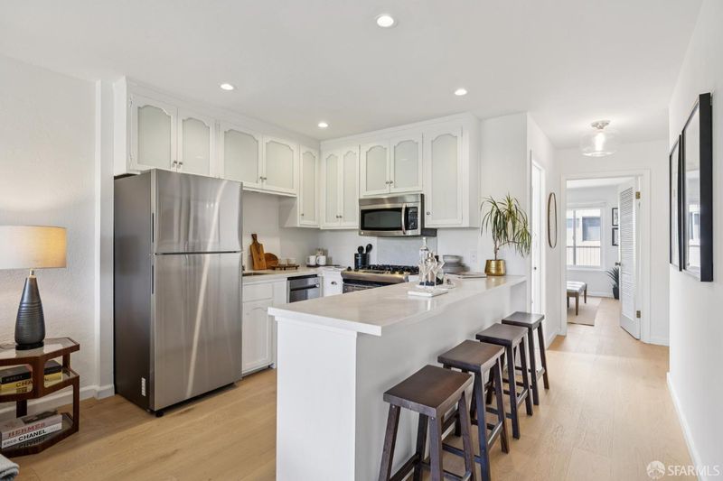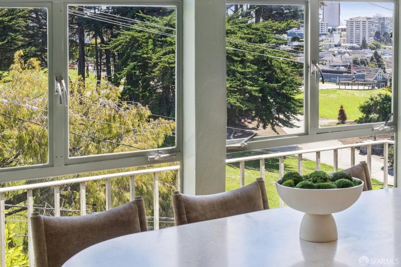 Perched atop Pacific Heights and overlooking Alta Plaza Park, this top-floor one-bedroom condo offers an open, light-filled layout with South-facing city views and one of San Francisco's most iconic green spaces just outside your door. Arched windows frame stunning park views and flood the living, dining, and kitchen areas with natural light. New flooring runs throughout the home, while the kitchen has been thoughtfully upgraded with new countertops and modern finishes, adding a contemporary feel that integrates seamlessly with the living space. The bedroom is quietly tucked away from the main living areas, offering a peaceful retreat with views of the city and Sutro Tower. A skylit bathroom is centrally positioned off both the kitchen and bedroom for easy access. Additional amenities include one-car garage parking and private storage. The unit is part of a pet-friendly four-unit building with low HOA dues. Set in one of San Francisco's most sought-after neighborhoods, just moments from Fillmore Street's shops, dining, and everyday essentials, and within close proximity to the Presidio and its expansive trails. This home offers a balanced city lifestyle with access to recreation, with tennis courts, a playground, dog park, and open green space across the street. 96 Walk Score | HOA: $419/mo