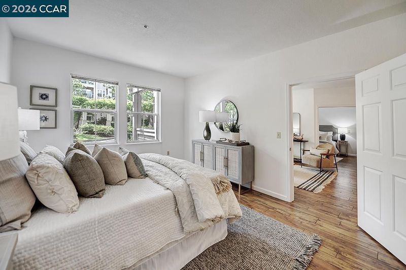 Fantastic Rosedown model in a premium location, ideally situated on the first floor just steps from the elevator allowing the ultimate convenience from garage parking. Beautifully updated with quartz countertops and new appliances in the kitchen, along with tastefully updated bathrooms. Gorgeous hardwood flooring flows throughout, creating a warm and inviting feel. Fresh custom paint enhances the light, bright interiors. Enjoy the ultimate convenience, super close to dining and activities. A lovely patio offers fantastic sylvan views, creating a peaceful outdoor retreat. Move-in ready and thoughtfully maintained, this home combines comfort, style, and effortless living in the sought-after Waterford community. An ideal blend of location, upgrades, and ease of living, perfect for enjoying all that it has to offer.