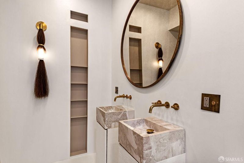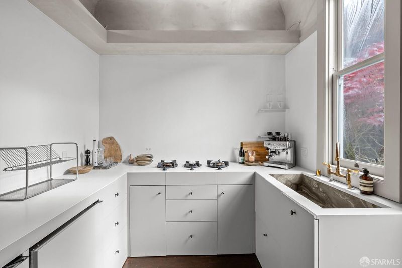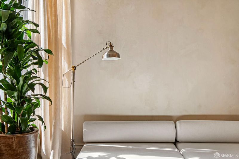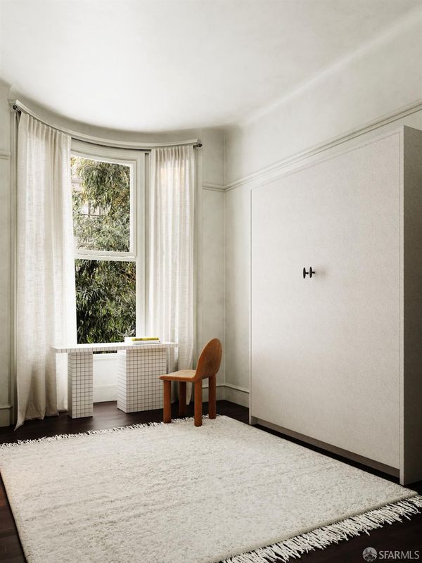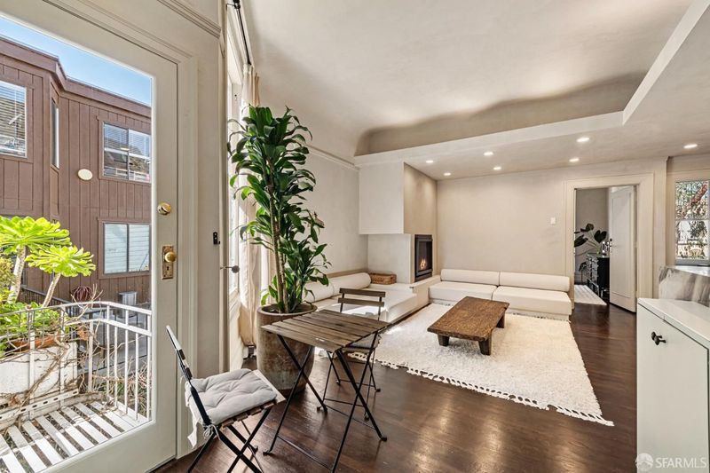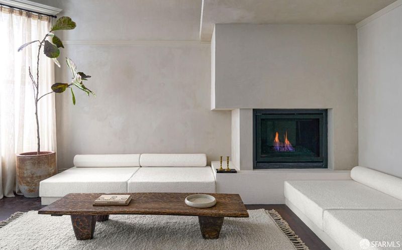 Experience serene sophistication and modern minimalism in this exquisite, top-floor, two bedroom condominium, renovated down to the studs. The living room features a custom-built, recessed fireplace framed by smooth, plaster-finished walls, enhancing its refined aesthetic. Integrated built-in seating adds both functionality and architectural interest, while rich hardwood flooring contrasts beautifully with the modern space. The abundant windows invite ample natural light, accentuating the room's airy and serene ambiance. The beautifully renovated kitchen boasts a statement onyx slab counter bar and sink with gas cook top, complemented by sleek modern cabinetry. Two spacious bedrooms each offer beautiful bay windows; one including a built in murphy bed for ultimate flexibility. The zen, spa-like bathroom features dual onyx vanities with brass finishes and a soaking tub equipped with a rainfall shower. Situated in a charming 4-unit Victorian building in Alamo Square, residents share a tranquil garden adorned with a mature palm tree. This incredibly desirable location is just steps from Alamo Square Park and the iconic Painted Ladies, with easy walking access to the vibrant neighborhoods of Hayes Valley, Divisadero Street, and Lower Haight.