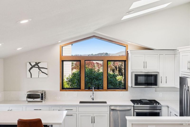 - Island, Pantry Cabinet, Quartz Counter, Skylight(s), Synthetic Counter