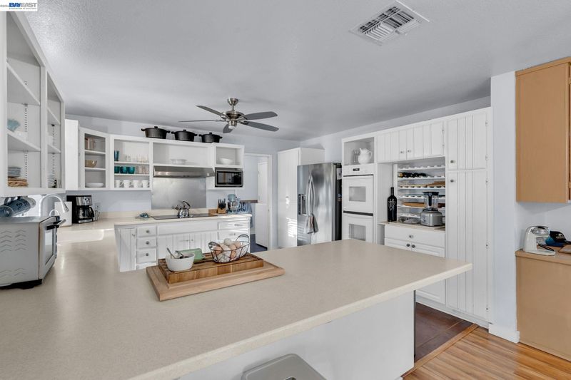 - Dishwasher, Double Oven, Electric Range, Range, Refrigerator, Gas Water Heater, Water Softener, 220 Volt Outlet, Breakfast Bar, Breakfast Nook, Counter - Solid Surface, Eat-in Kitchen, Electric Range/Cooktop, Disposal, Pantry, Range/Oven Built-in