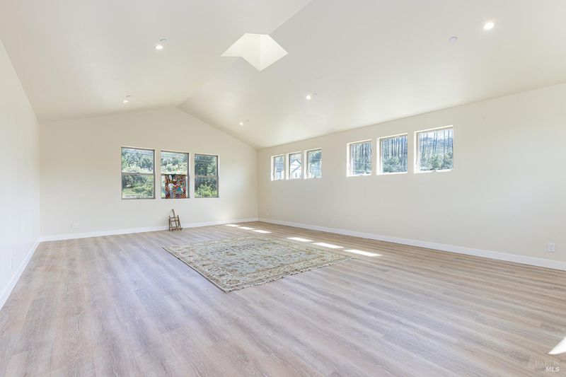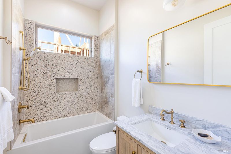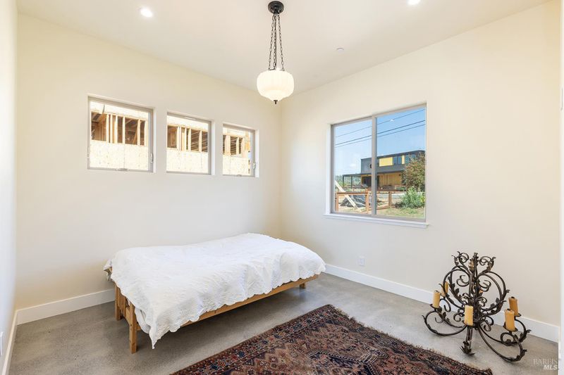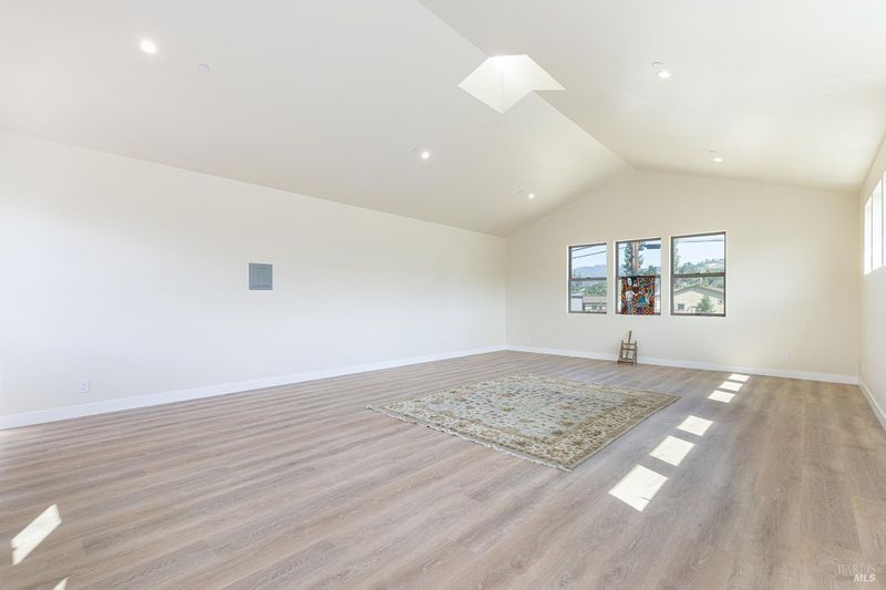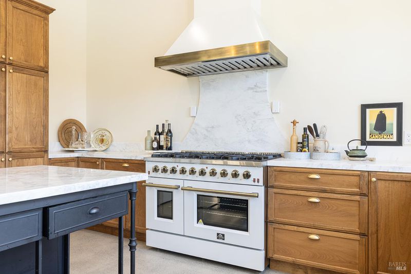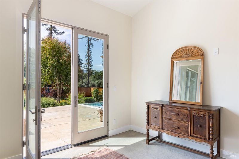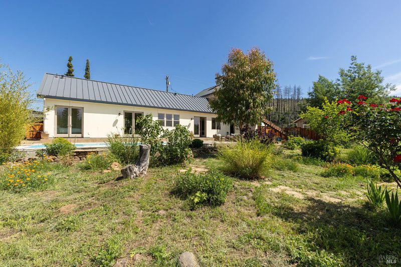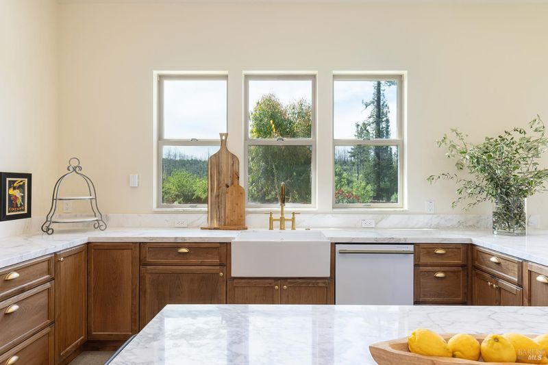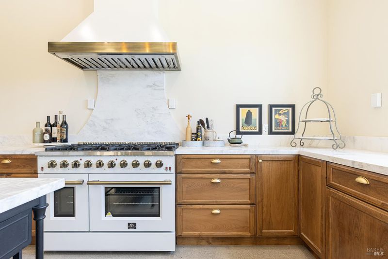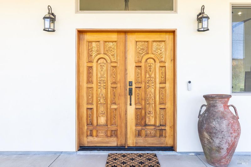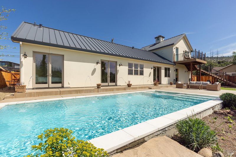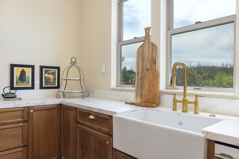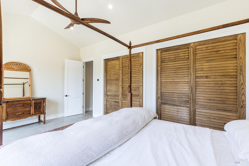 New construction with a true St. Helena sensibility, 753 Sunnyside Road brings together modern craftsmanship, thoughtful design, and an established Napa Valley garden setting. Set on +/- 0.39 acres, the +/- 2,100 square foot, 2 bedroom, 2 bathroom contemporary farmhouse was designed with careful attention to detail and a strong connection to outdoor living. Inside, vaulted ceilings, polished concrete floors, and hand-carved solid wood double doors establish an immediate sense of quality. The kitchen earns the description 48 Forno range, Shaw's farmhouse sink, oversized refrigerator, custom plaster hood, Calacatta marble countertops, warm wood cabinetry, brass hardware, and a large island with breakfast bar seating. A French country kitchen in the truest sense. The vaulted primary suite opens to the pool terrace through French doors. Both full baths are finished with equal intention: one with a curbless stone tile shower, pebble mosaic floor, brass rain fixture, dark wood vanity, and Calacatta marble counter; the other appointed with the same brass hardware and considered detailing throughout. A loft above the garage offers flexible space for an office, studio, or guest overflow. Outdoors, the property offers the feel of a private resort while still reflecting the character of Napa Valley living. A new rectangular pool and spa are framed by stone coping and a generous concrete surround, with a deck above for shaded lounging or al fresco dining. A true chef's garden anchors the landscape mature fruit trees, flowering borders, flagstone paths, and garden beds with ample land to cultivate further or simply let it remain the secret garden it already is. Additional features include a well-appointed laundry room with full cabinetry, utility sink, and stacked washer/dryer, plus an oversized finished garage with recessed lighting and interior access. This is a rare opportunity to own a newly built home in St. Helena with elevated finishes, mature landscaping, and a warm, lived-in character from day one.