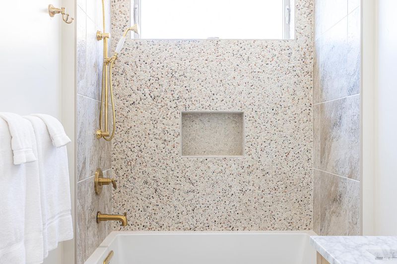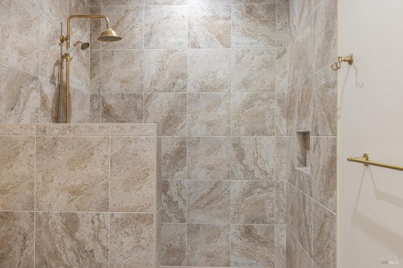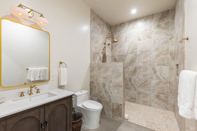 - Dual Flush Toilet, Low-Flow Shower(s), Low-Flow Toilet(s), Marble, Radiant Heat, Shower Stall(s), Stone, Tile