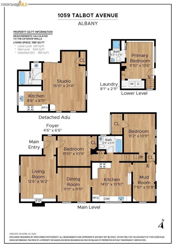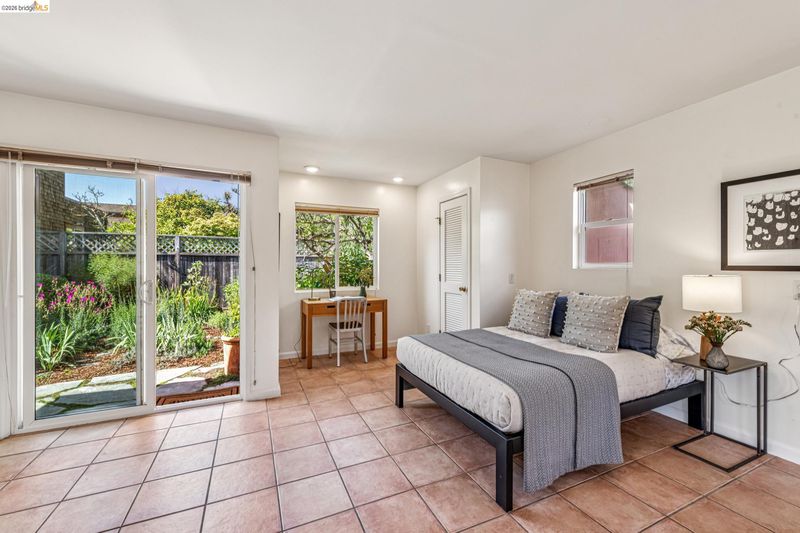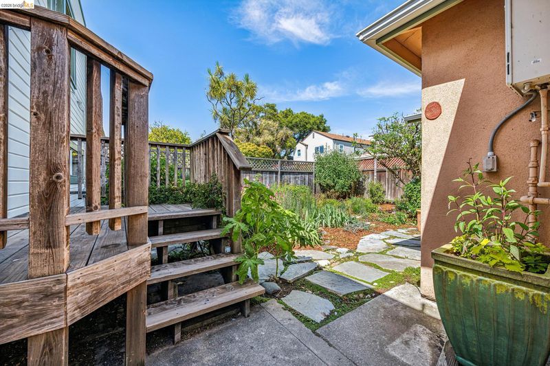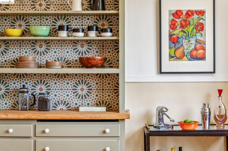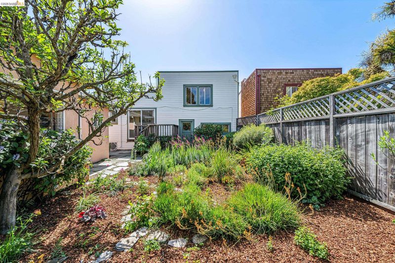Sunny, vibrant, and full of charm, this Mediterranean-style residence in the Albany flats offers timeless character and rare flexibility with a fully permitted detached ADU. Rich in color, lush gardens, and preserved original details, this home lives beautifully inside and out. The 1,493± sq ft main house, built in 1928, features 3 bedrooms, a separate study/sunroom, and 2 full baths. A graceful archway connects the formal entry to the inviting living room, which features an original fireplace and built-in shelves. The spacious dining room accommodates a large table and is filled with natural light throughout the day. Much of the home retains its original hardwood floors. The thoughtfully renovated kitchen honors the home’s heritage with an original California cooler, a pie hutch, a wooden sink skirt, and Douglas fir floors. The old is married with new through the use of beautiful decorative tile, coordinated cabinetry, and carefully selected hardware, which was sourced to match thetch the original design. Mixed countertop surfaces create a bespoke, furniture-like feel. The primary suite includes an en suite bath and laundry facilities, while two additional bedrooms offer privacy near the second full bath. The separate plus room off the kitchen is ideal for a home office, sunroom, or creative space. Completed in 2006, the detached 488± sq ft ADU complements the home’s style with large terra-cotta hued tile floors and garden views. The full kitchen features full-size appliances and abundant counter space. Flexible studio living offers space for sleeping, dining, working, and relaxing. Perfect for guests, rental income, or multigenerational living. Outside, winding garden paths lead through flowers and fruit trees. A graceful weeping willow adds privacy from the street, while lemons greet you at the entrance. Separate driveways for the main house and ADU provide abundant off-street parking. Ideally located on Talbot Avenue, just moments to the neighborhood tot lot, Solano Avenue shops and restaurants, parks, transit, and bike routes. A rare opportunity to own a character-filled Albany property with income potential and versatile living options.