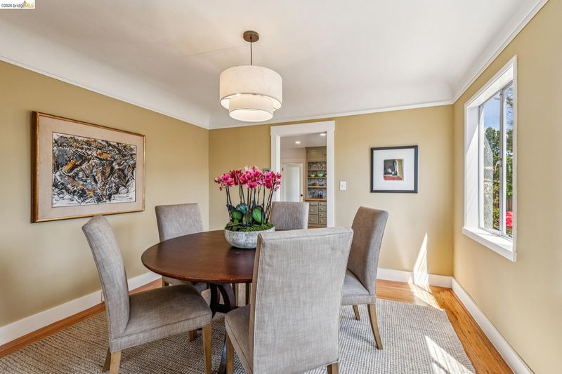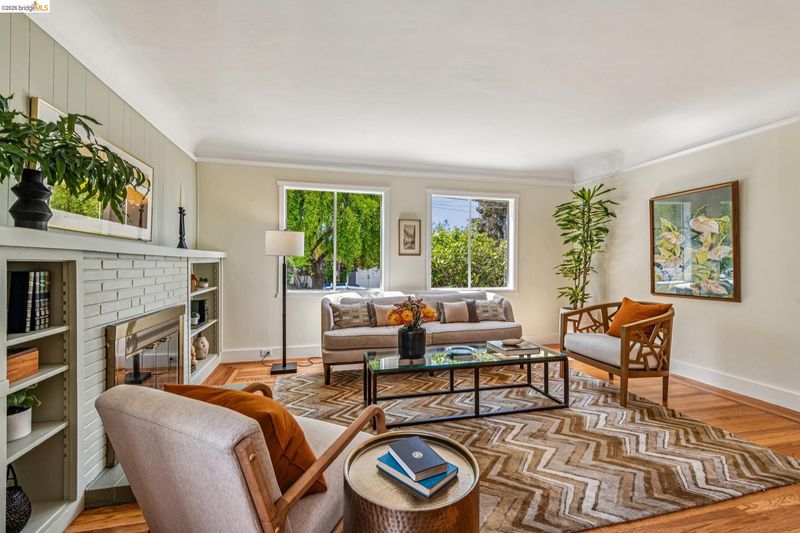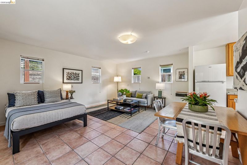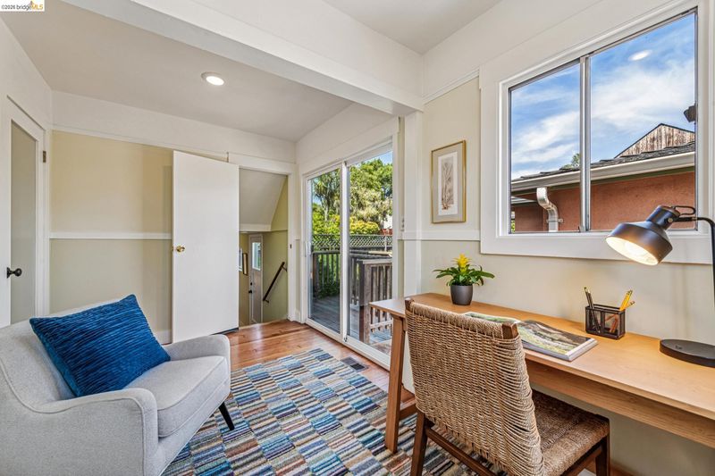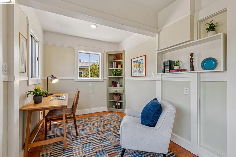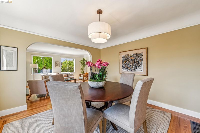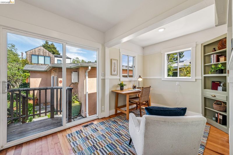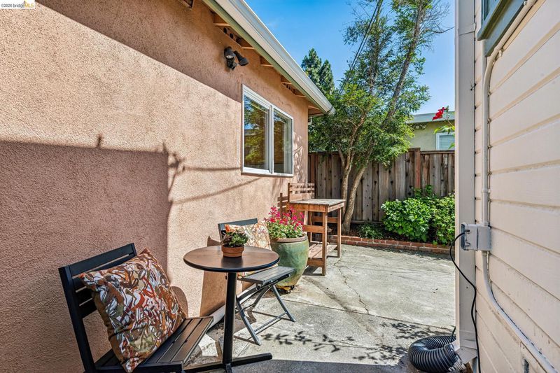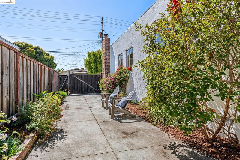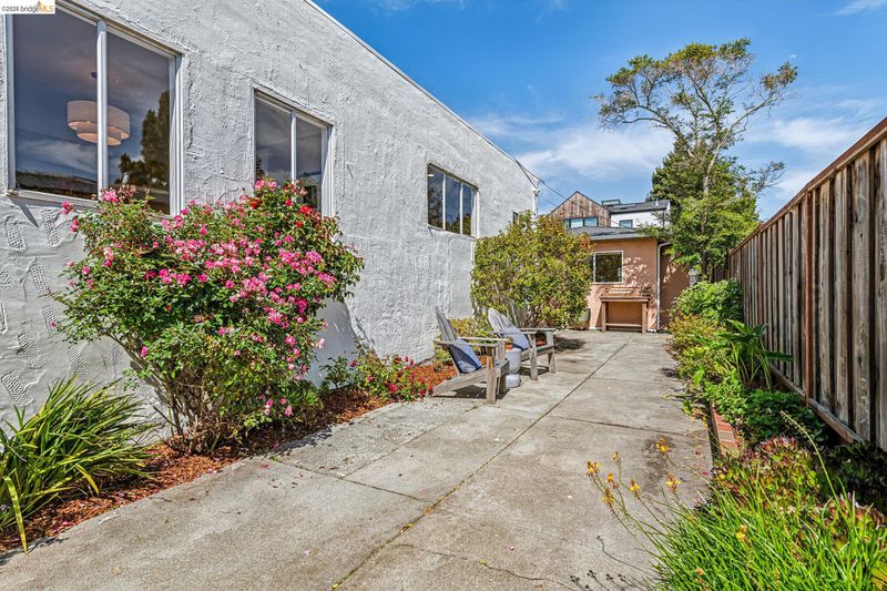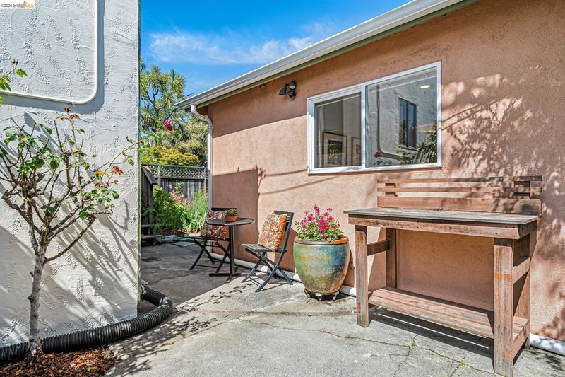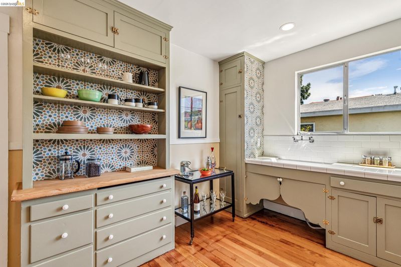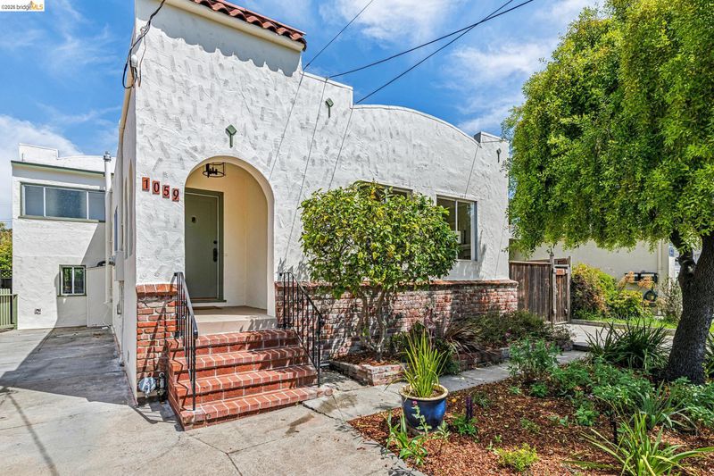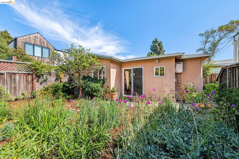 Sunny, vibrant, and full of charm, this Mediterranean-style residence in the Albany flats offers timeless character and rare flexibility with a fully permitted detached ADU. Rich in color, lush gardens, and preserved original details, this home lives beautifully inside and out. The 1,493± sq ft main house, built in 1928, features 3 bedrooms, a separate study/sunroom, and 2 full baths. A graceful archway connects the formal entry to the inviting living room, which features an original fireplace and built-in shelves. The spacious dining room accommodates a large table and is filled with natural light throughout the day. Much of the home retains its original hardwood floors. The thoughtfully renovated kitchen honors the home’s heritage with an original California cooler, a pie hutch, a wooden sink skirt, and Douglas fir floors. The old is married with new through the use of beautiful decorative tile, coordinated cabinetry, and carefully selected hardware, which was sourced to match thetch the original desi