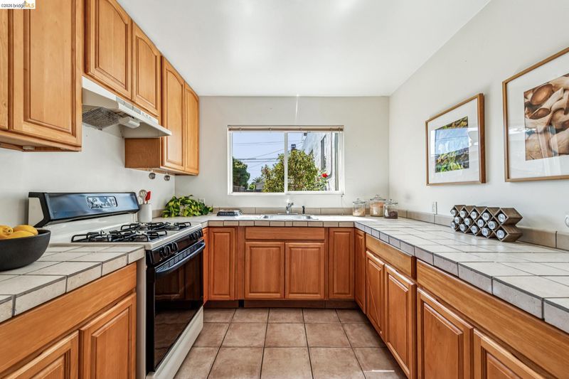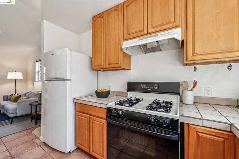 - Gas Range, Refrigerator, Dryer, Washer, Counter - Solid Surface, Tile Counters, Gas Range/Cooktop