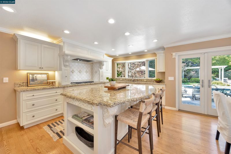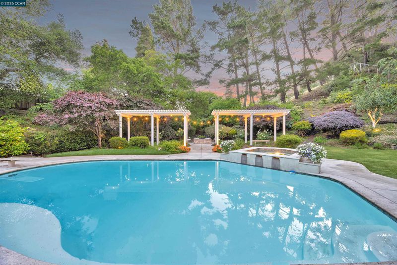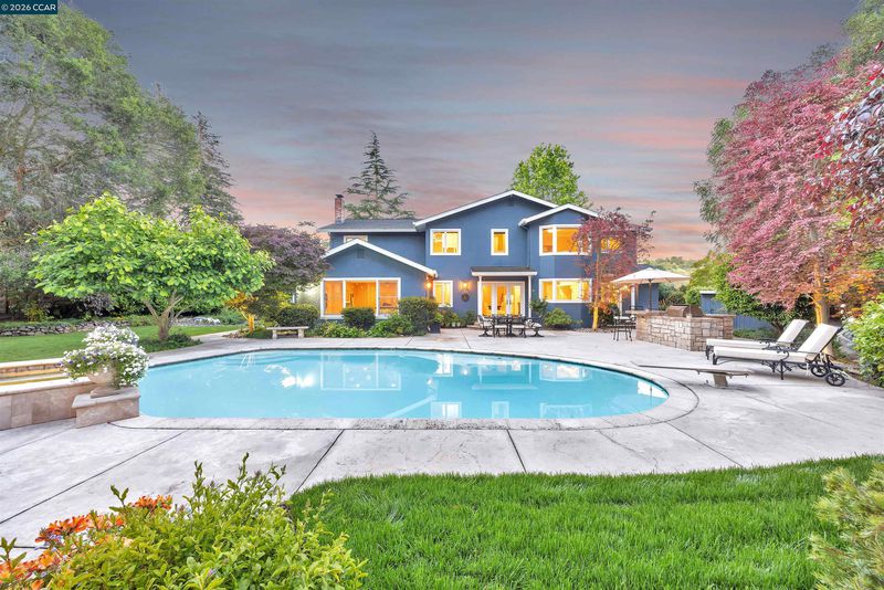 Tucked at the end of a cul-de-sac in sought-after Campolindo neighborhood, this exceptional 6BD/3BA home offers timeless charm on a rare .75-acre lot. With over 4,000 sq ft, the home features spacious, flexible living areas ideal for both everyday living and entertaining. The updated kitchen includes granite countertops, double ovens, a Wolf cooktop, Miele dishwasher, custom cabinetry, and a bright breakfast nook overlooking the backyard. Formal living and dining rooms, a cozy fireplace, and a large bonus room provide versatile spaces throughout. A main-level bedroom and full bath offer added convenience. Upstairs, the expansive primary suite features a fireplace, sitting area, office, hobby room, dual walk-in closets, and a spa-like bath. The private backyard is a true retreat with a pool, spa, mature landscaping, fruit trees, built-in BBQ, fire pit, and multiple entertaining areas. Close to Campolindo High, Campo Cabana, Lafayette Reservoir trails, downtown Lafayette, and commuter routes. Lovingly expanded, meticulously maintained, and truly one-of-a-kind—this is a rare opportunity to own a special property in an exceptional neighborhood.