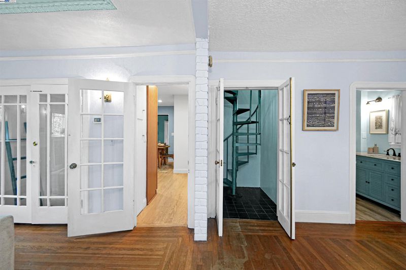 This is the One! Discover this enchanting Millsmont bungalow—a rare blend of original charm, modern touches, you'll love the Professional Viking Double Oven Stove & hood and has endless potential.Second bedroom is uniquely accessible by a spiral staircase, giving the space a cozy loft-like feel. The home features a warm family room that could easily be reimagined into a spacious primary suite with its own existing bathroom. Original details shine throughout with built-in shelves framed by glass doors and a striking brick fireplace adorned with artistic historic inserts. Step outside into your own urban oasis: a lush, storybook-inspired garden surrounded by mature trees and fruit trees—peaceful, private, and magical. The semi-converted garage offers additional possibilities and was previously used as an art and music studio, with potential for an ADU (buyer to verify with City of Oakland).Centrally located near the 580, AC Transit (bust stop is steps away), the zoo, schools, parks, and neighborhood conveniences, this home offers character, comfort, & room to create your vision. What are you waiting for? Make it your own!