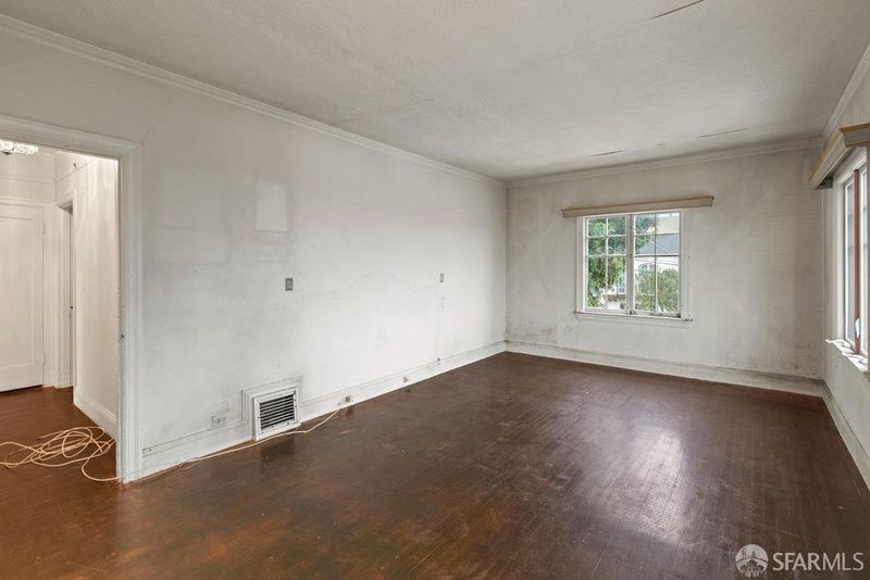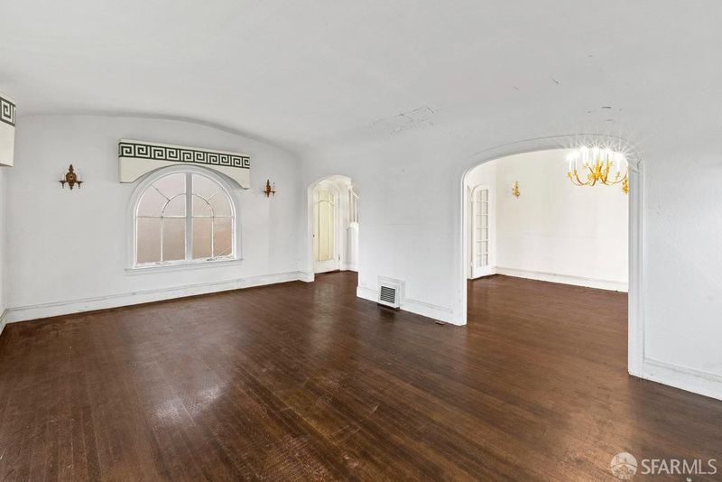 Fully detached 4BD/2BA Mediterranean Revival with sun-filled rooms, original hardwood floors, arched windows and archways, a cozy wood-burning fireplace, two-car parking, and a massive basement with its own entrance—ripe for expansion and multi-generational potential; all steps to Balboa Street cafés, Ocean Beach, and Golden Gate Park.