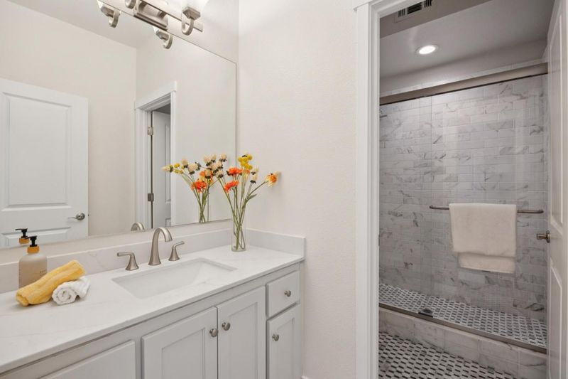 Experience refined modern living in this 9-year-new luxury single-family residence, enhanced with thoughtful designer touches throughout, and perfectly positioned in one of Sunnyvale's most sought-after neighborhoods. The thoughtfully designed floor plan features a guest bedroom and full bathroom and an office on the main level, while four spacious bedrooms upstairs provide flexibility for family living. At the heart of the home, the chefs kitchen stuns with a brand-new waterfall island countertop, sleek cabinetry, and high-end stainless steel appliances, creating a space that is as beautiful as it is functional. The spa-inspired primary suite is a private retreat, featuring a brand-new dual-sink vanity, and a luxurious walk-in rainforest shower, offering a serene, resort-like experience at home. Just a short walk to Sunnyvale downtown, this residence places you moments from Target, Whole Foods, Murphy Street dining, theaters, major freeways, leading tech campuses, and schools, delivering the ultimate Silicon Valley lifestyle with style and sophistication. This is a rare opportunity to own a home where luxury, location, and designer details come together effortlessly. Welcome home!