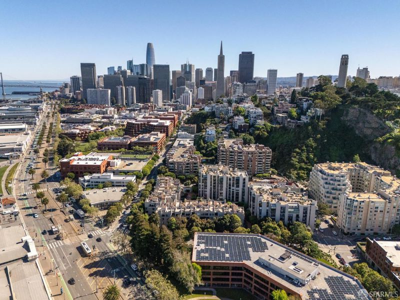 An unparalleled home for indoor-outdoor entertaining, this rarely available two-level, three-bedroom corner townhouse offers an exceptional San Francisco lifestyle along the vibrant North Waterfront. Meticulously maintained and thoughtfully designed, this sophisticated yet comfortable residence features an updated, light-filled kitchen and an open-concept living and dining area with direct access to a stunning wrap-around patio. The expansive ~670 sq. ft. private, walled garden creates a true urban oasis ideal for al fresco dining, morning coffee, entertaining, or relaxing. Outdoor fire pits and a wood-burning fireplace enhance the ambiance from day to evening. The upper level offers three bedrooms and two baths. The serene primary suite serves as a private retreat with a full bath, walk-in closet, built-in cabinetry, stacked washer/dryer, and a mini refrigerator. The second bedroom enjoys peaceful greenery outlooks, while the third bedroom currently used as an office/guest room overlooks the dynamic Embarcadero. Additional highlights include one dedicated parking space conveniently located near the elevator and a private storage closet in the garage. Telegraph Landing is a pet-friendly community offering a newly landscaped central courtyard, common roof deck, and 24/7 door person and security. With a remarkable Walk Score of 99, this prime location places you just moments from the SF Bay Club, Cruise Ship Terminal, Ferry Building and Farmers' Market, RJ's Market, Hillstone, and a variety of renowned restaurants. E-bikes are available across the street, and the historic Embarcadero trolley provides easy access to Oracle Park and Chase Center. Jackson Square and North Beach also are in close proximity. Fleet Week and the Blue Angels show is a prime event in the neighborhood. This is a truly rare opportunity to enjoy the very best of San Francisco living.