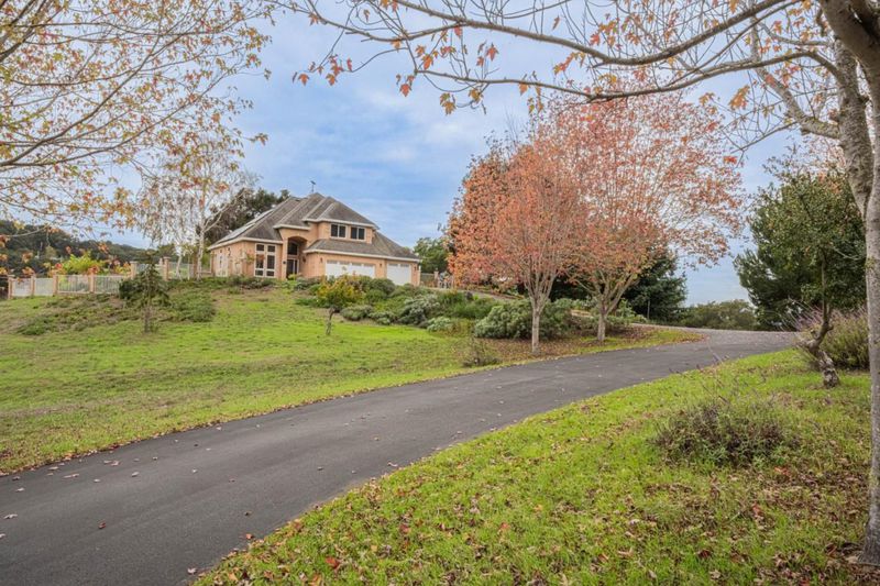 Original Owners like new spacious 2,246 sq ft residence boasts 4 bedrooms. Very bright with many windows and views from every window. 5.46 acres with a community pond and picnic table. Home is all solar. 3 different systems. The latest in 2021 for your 240v electric cars. A convenient ground floor bedroom with a walk-in closet may also be used as an office or den. The master has a huge walk in closet, balcony and gorgeous bathroom. With jetted tub and shower. The kitchen is a chef's delight, featuring an electric cooktop, oven, convection oven, refrigerator, granite countertops and an island with a sink. With amenities like a dishwasher, garbage disposal, and pantry, it is designed for both functionality and style. Enjoy family meals in the breakfast nook or dining area in the living room. The home offers a cozy fireplace and versatile flooring options including carpet, hardwood, and tile. 18 foot entry ceilings and 9 foot ceilings enhance the open, airy feel of the living spaces. The garage is 736 sq. ft. with 9 foot ceilings. A security gate for peace of mind. Also comes with a fire pump, 200 ft. of hose and extra 2500 ga. water tank. The laundry room has a washer and dryer. Situated in the Aromas/San Juan Unified School District, this home is perfect for families.