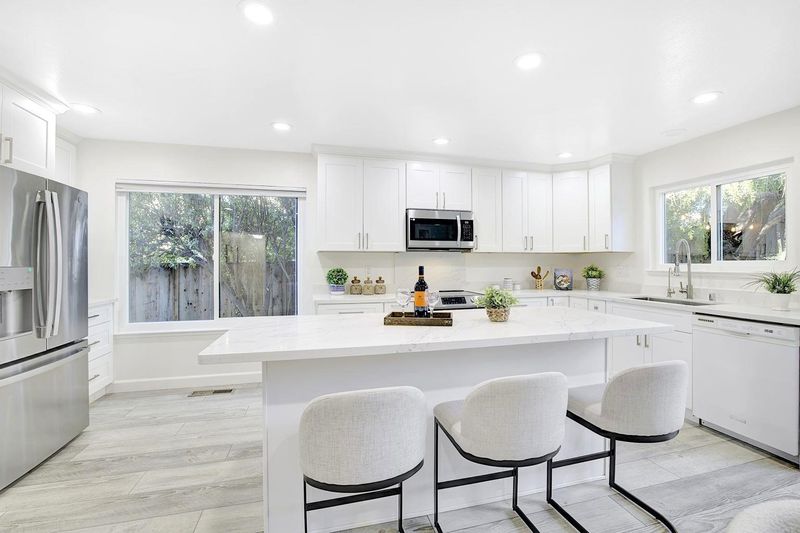 WEST-facing, single-story home set on an expansive 8,463 sq ft cul-de-sac lot in a prime, walkable commuter location. Move-in ready and freshly painted inside and out, this 3-bedroom, 2-bath residence offers a clean, modern aesthetic with thoughtful updates throughout. The refreshed kitchen features new cabinetry, quartz countertops, an induction range, and select stainless steel appliances, complemented by a timeless black-and-white contemporary design palette. Recent upgrades include dual-pane windows, smart recessed lighting and remodeled bathrooms.The functional floor plan includes a separate living room with a cozy fireplace and an open kitchen with eat-in dining, ideal for comfortable everyday living and effortless entertaining. The oversized backyard provides exceptional flexibility and future potential for expansion, an ADU, or a pool. Detached storage shed included. Conveniently located within walking distance to BART, shopping, the library, and Quarry Lakes Regional Park, with easy access to major freeways and bridges. A rare opportunity offering lot size, location, and turnkey comfort.