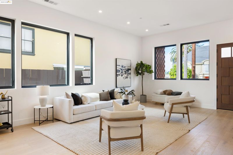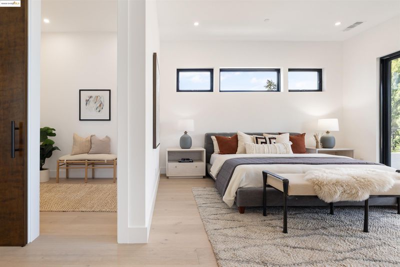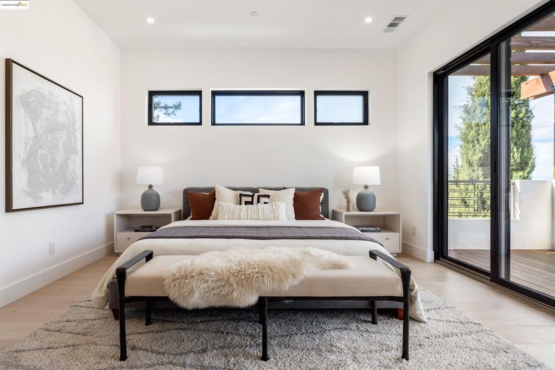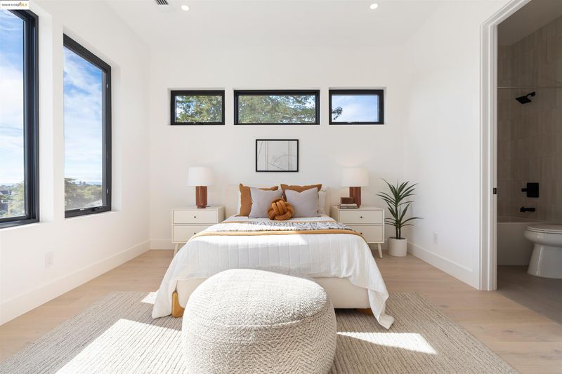 Another stunning ground-up new construction in Crocker Highlands by Cube Builders! Designed with a curated contemporary aesthetic that complements the neighborhood’s architectural character, this home features clean modern lines, expansive windows, warm cedar shingle accents, and exceptional indoor-outdoor flow. The main level offers an ideal floor plan: a spacious great room with wide-plank oak flooring, abundant natural light, and an effortless connection to the dining area and chef’s kitchen. Large sliders open directly to a level-out backyard with lawn and a dramatic covered patio, perfect for year-round entertaining. Upstairs, all four bedrooms are en-suite, a rare and highly desirable layout. The primary suite includes a stunning modern bath and generous scale while Bay views add a quiet layer of luxury. The additional suites provide comfort and flexibility for family, guests, or work-from-home needs. Thoughtfully built and beautifully finished, 761 Calmar brings together modern design, craftsmanship, and functionality in one of Oakland’s most friendly and sought-after neighborhoods.