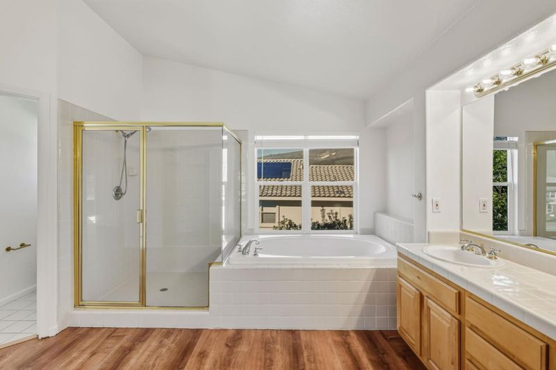 - Double Sinks, Full on Ground Floor, Primary - Stall Shower(s), Tile, Tub in Primary Bedroom