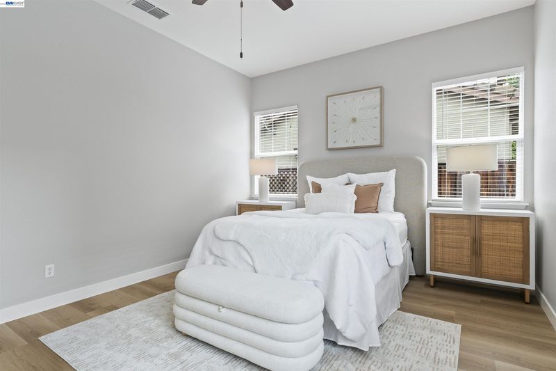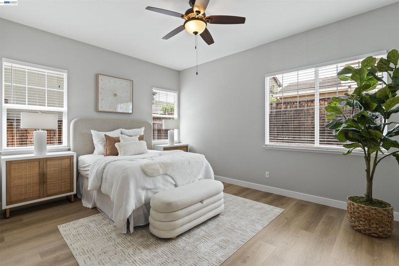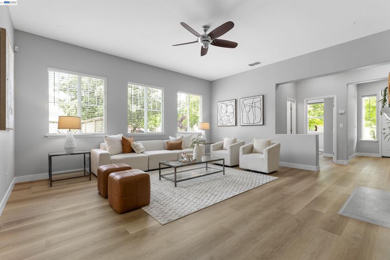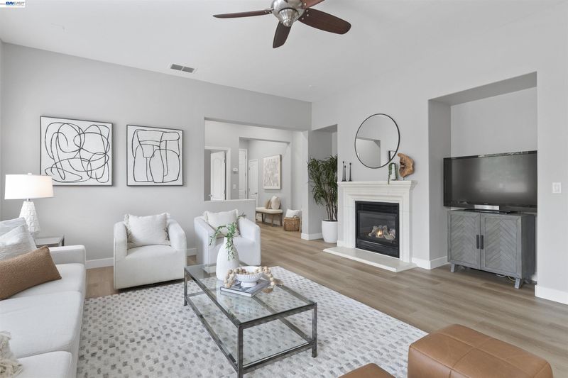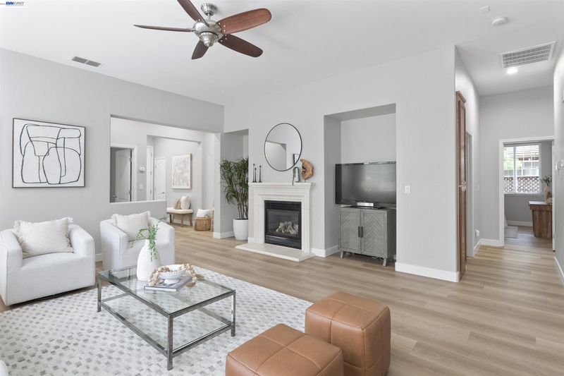 Welcome to 327 Goodall this coveted East-facing single-story 4 bedroom 3 full bath model has been meticulously maintained and sits prominently on a sprawling corner lot. Completely move-in ready, the home features brand-new luxury vinyl plank flooring and designer paint that flows seamlessly through every room. Upon entry, you are greeted by a massive great room boasting high vaulted ceilings and a cozy gas fireplace. Large windows flood the space with natural light, highlighting the open, airy floor plan. The heart of the home is the gourmet eat-in kitchen, complete with quartz countertops, gas appliances and a prep island—perfect for hosting friends and family. The spacious owner’s suite serves as a private retreat, featuring a soaking tub, double vanities, and a generous walk-in closet. Three additional generously sized bedrooms and two well-appointed guest bathrooms provide ample space and comfort for family or visitors, ensuring everyone enjoys their own private sanctuary. Outside, the large, low-maintenance corner lot offers the ultimate backdrop for summer nights and outdoor gatherings. Attached 2 car garage with 220V set up for EV charging. Located in the heart of one of the most desirable locations in Mountain House, you are steps away from trails, parks, and the award-winning Wicklund School. Say goodbye to the morning drop-off line! —walk to this award-winning K-8 school. Enjoy quick and easy access to I-580, 205, and Hwy 4. NO HOA fees! Enjoy the freedom of Mountain House living without the monthly fees. Don’t miss this opportunity to live the dream in one of Mountain House’s most established and sought-after neighborhoods!