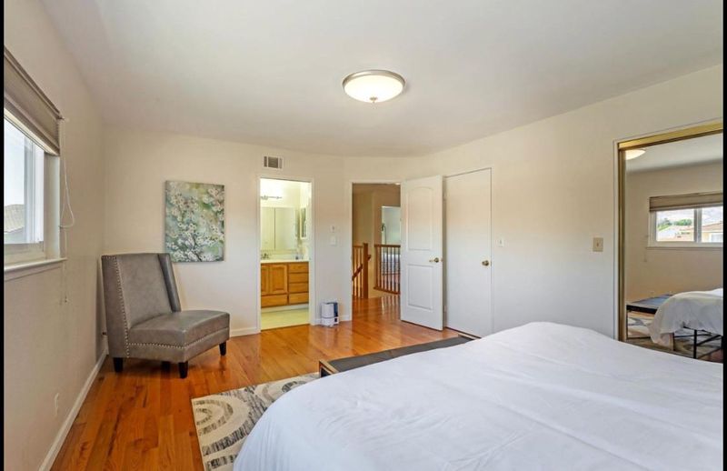 Spacious and beautifully maintained two-story home located in a quiet San Jose neighborhood. This 5-bedroom, 3-bath residence offers approx. 2,533 sq ft of living space on a generous 6,000+ sq ft lot, ideal for multigenerational living. Enjoy a bright and open layout featuring a chef's kitchen with granite countertops, full backsplash, stainless steel professional-grade gas range, and custom cherry wood cabinetry with abundant storage. Dual windows overlook the lush backyard, filling the space with natural light. Hardwood floors run throughout no carpet! Separate living and family rooms, plus a formal dining area perfect for entertaining. The expansive primary suite features dual closets and a spacious en-suite bath. Downstairs bedroom and full bath are ideal for guests or extended family. Updated bathrooms, a dedicated laundry room with storage, dual pane windows, recessed lighting, central heating, and solar panels for energy savings. Attached 3-car garage, wide driveway, and low-maintenance yard with open patio perfect for weekend BBQs. Located near highways 85, 87 & 101, with quick access to shopping, dining, and parks. A turn-key gem not to be missed!