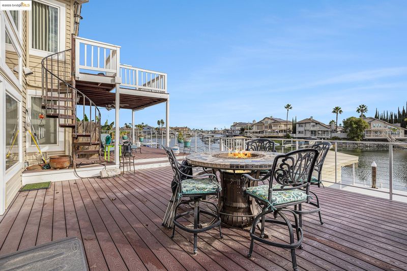 This wonderful 4-bedroom, 2.5-bath home offers over 3,100 sq. ft. of beautifully designed living space. Step inside to soaring cedar, vaulted ceilings and a dramatic catwalk overlooking the sunken living room—perfect for entertaining with a full bar and seating area. The spacious eat-in kitchen opens to a separate formal dining room and features access to an expansive vinyl deck, ideal for gatherings or sunset dining. Enjoy the beauty of hardwood flooring throughout and a versatile main-level bedroom that can double as an office, den, or guest space. The primary suite offers its own private retreat with a large deck and spiral staircase leading to the lower-level decking—perfect for taking in the water views. Energy efficiency meets luxury with owned solar, keeping your utility costs low year-round. There’s side yard access for all your toys and an extra-large U-shaped dock with a canopy, spacious enough to accommodate a table and chairs—perfect for relaxing or entertaining waterside. With desirable eastern exposure and access to over 1,000 miles of Delta waterways, you’ll enjoy endless boating, skiing, fishing, and paddleboarding adventures right from your backyard!