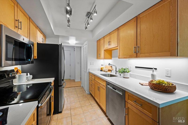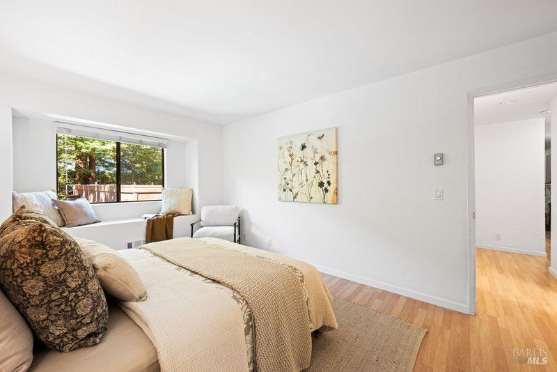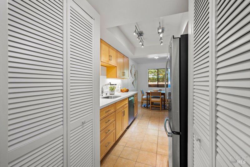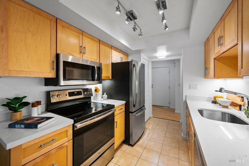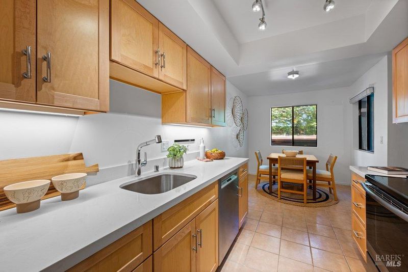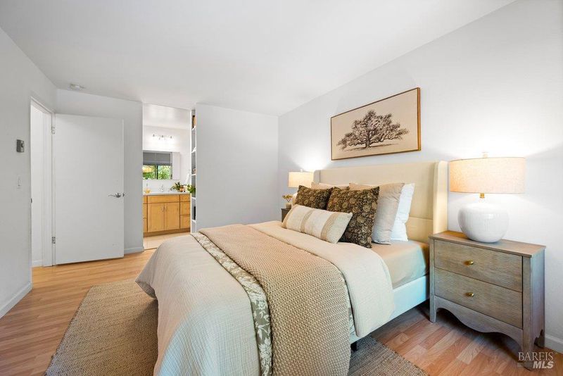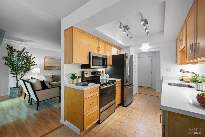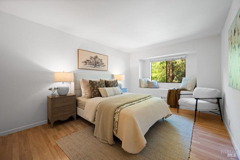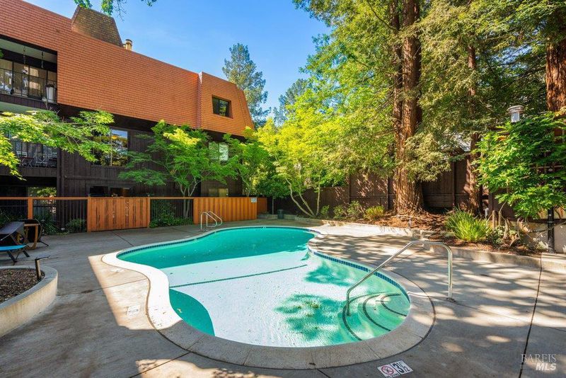 Welcome to this beautifully updated two-bedroom, one-bath residence in the sought-after Oaks building in San Rafael. This inviting, single-level condo features stylish flooring throughout and thoughtfully updated kitchen and bath spaces with sleek stone countertops. Large windows in every room bring in abundant natural light, with select outlooks overlooking the tranquil community pool, creating a bright and welcoming atmosphere. Enjoy your morning coffee or unwind in the evening on your private balcony with serene Redwood views. Additional highlights include in-unit washer and dryer, a walk-in closet, a additional sink, and generous storage and closet space throughout, along with the convenience of an on-site Amazon locker for secure package delivery. This well-maintained elevator building offers easy single-level living, a designated corner parking space, and additional storage. Residents also enjoy access to a community pool and clubhouse, all just minutes from Highway 101 and the shops, dining, and energy of downtown San Rafael's vibrant 4th Street.